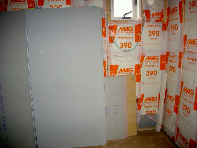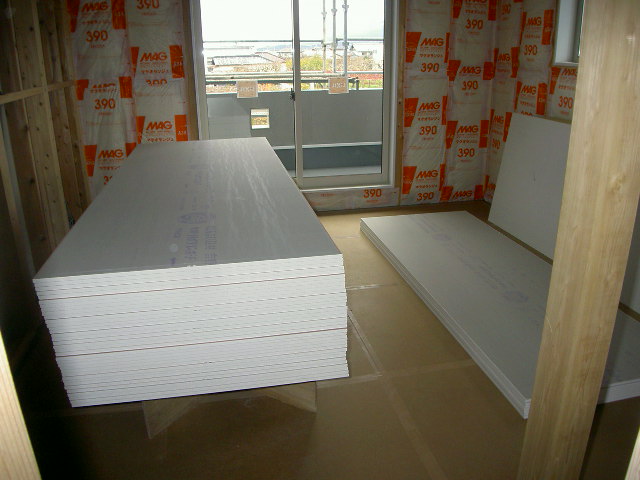 吹き抜け部分の音を寝室に漏れない様に硬質石膏ボードを使います。