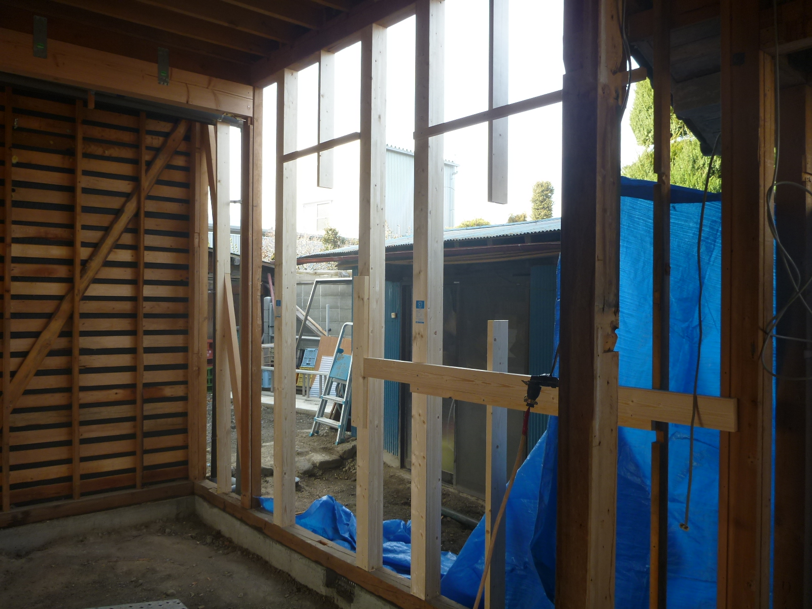 現場では柱と梁の補強や間柱を入れたりしています!!