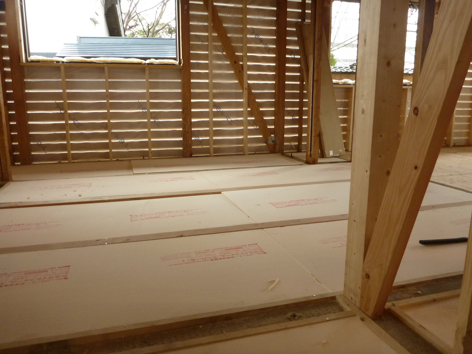 床には断熱材が入り、24ミリの合板が張られました!!