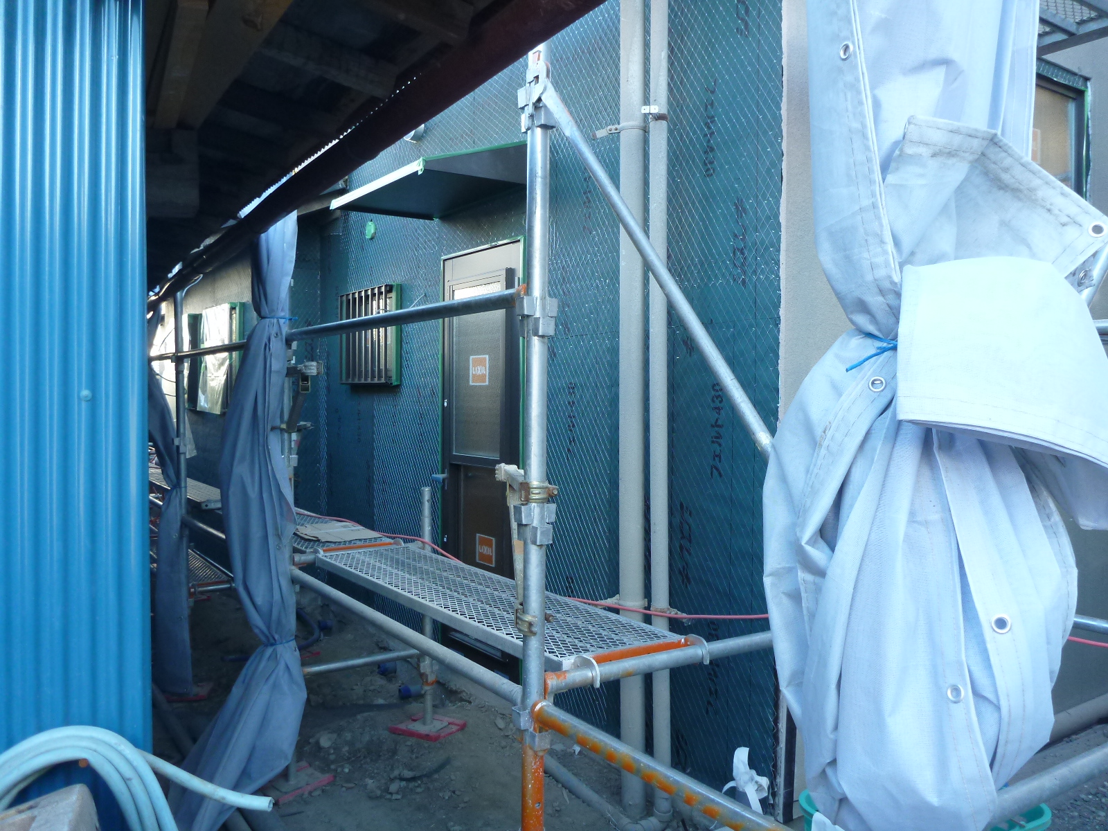 左官屋さんは外壁に《防水紙》とモルタルを付着させるために用いる
