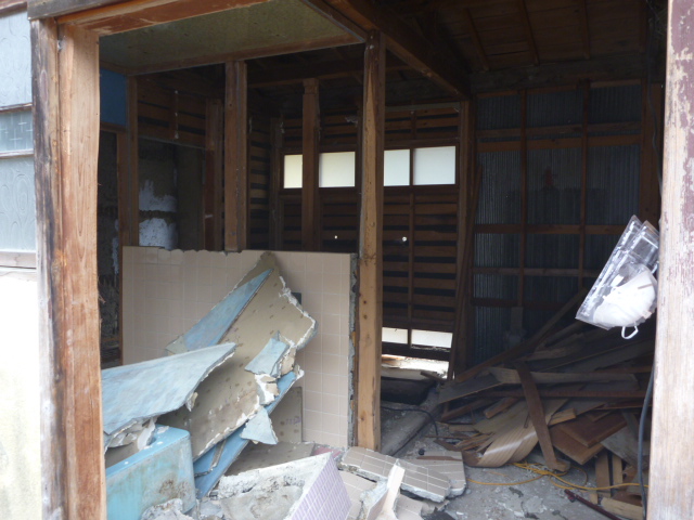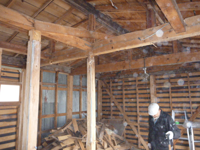 大工さん2人で解体です、この日は悪天候の中での作業だったのでとても大変そうでした(>_<)