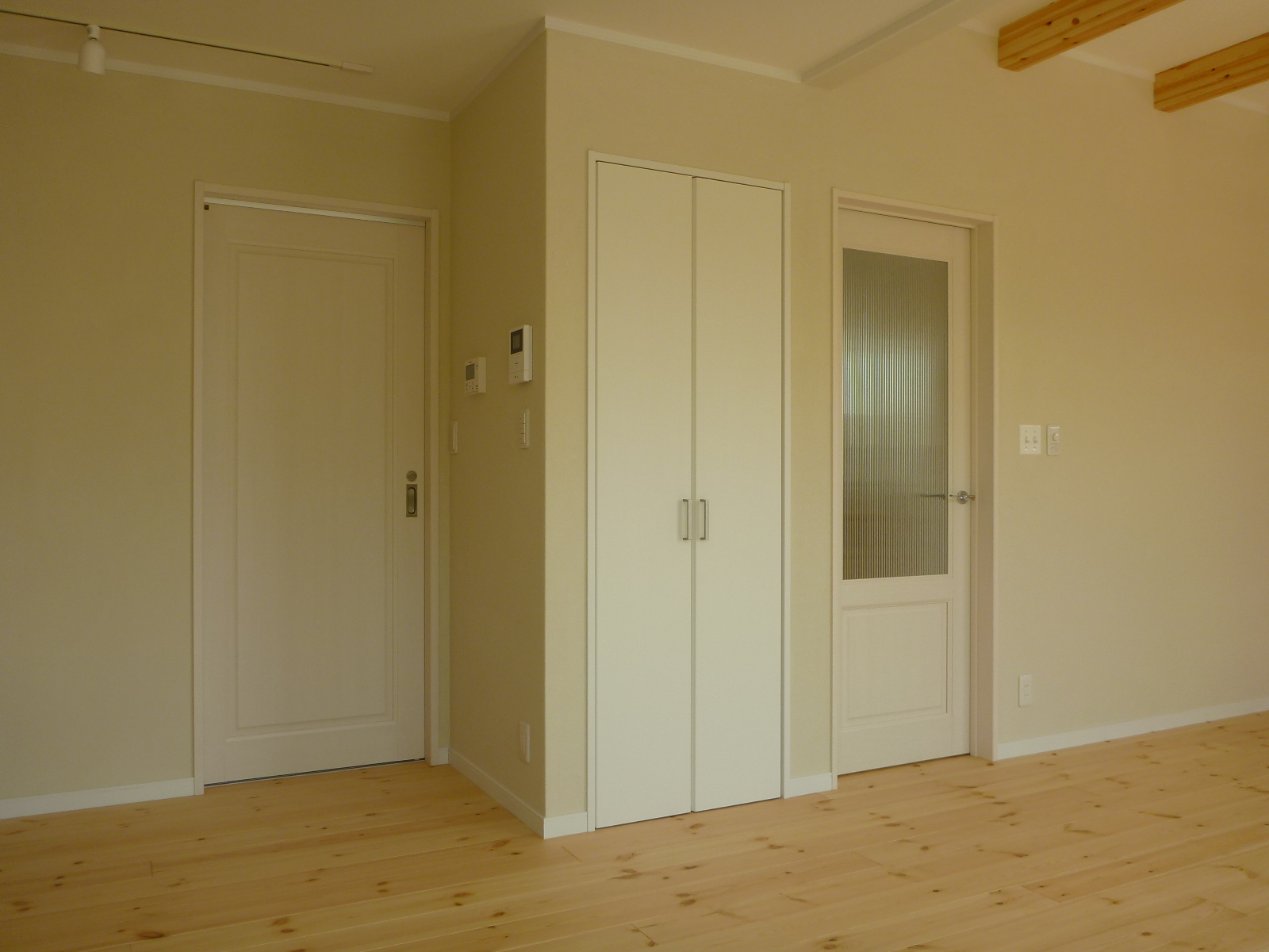 奥に見える扉の向こう側はパントリーとなっています。たくさんストックしておけますね!!