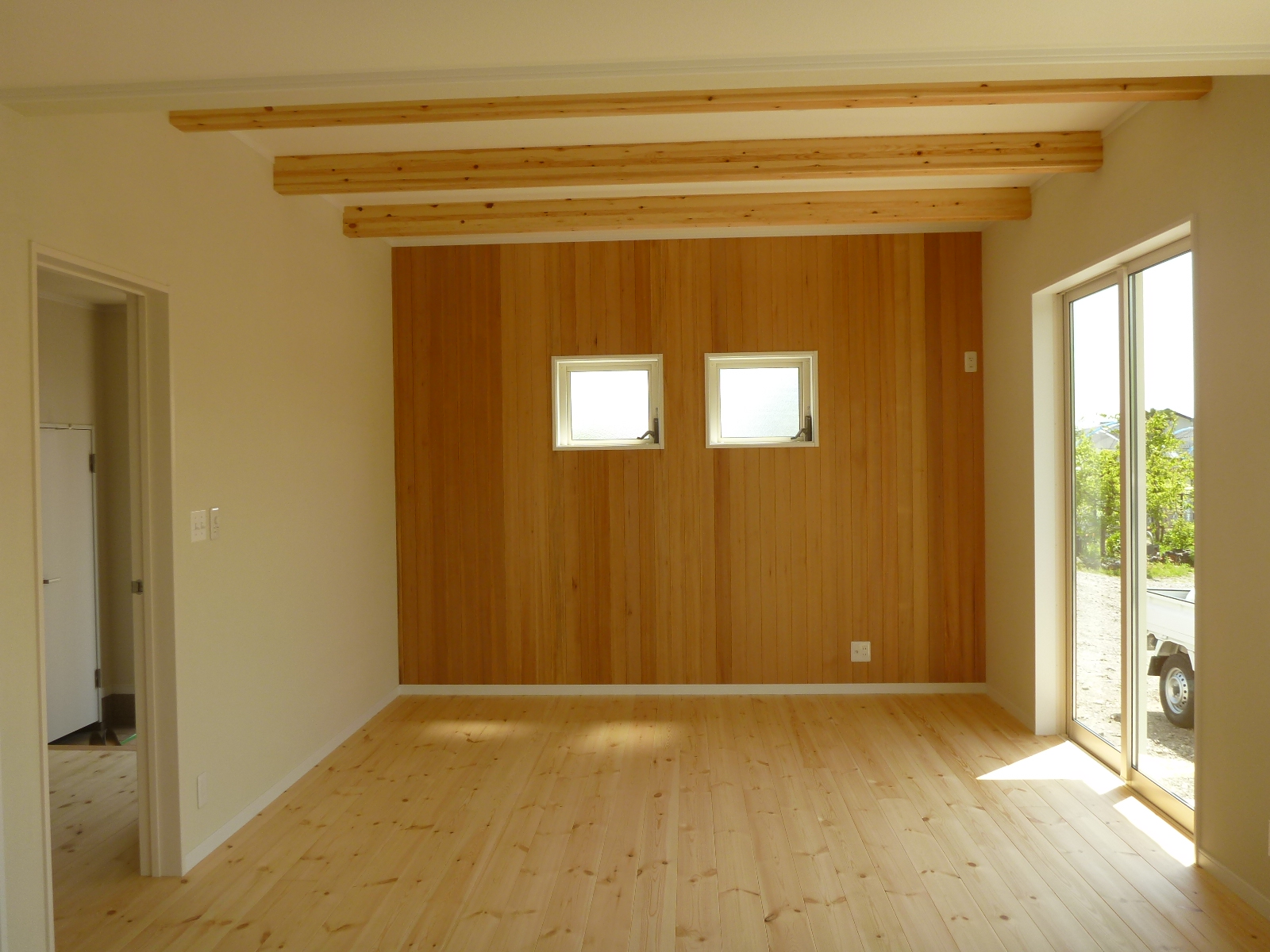 リビングの壁は吸湿、放湿性などに優れている珪藻土です!!