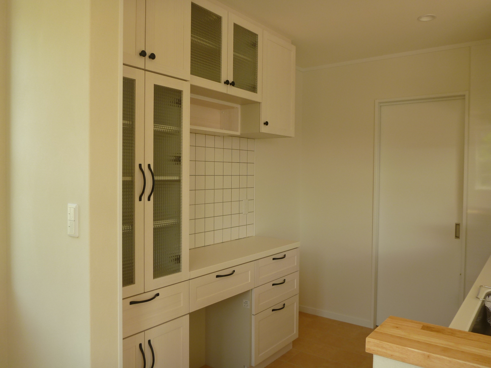 キッチンの背面収納は『WOODONE』のものです、とってもかわいいです♡♡♡