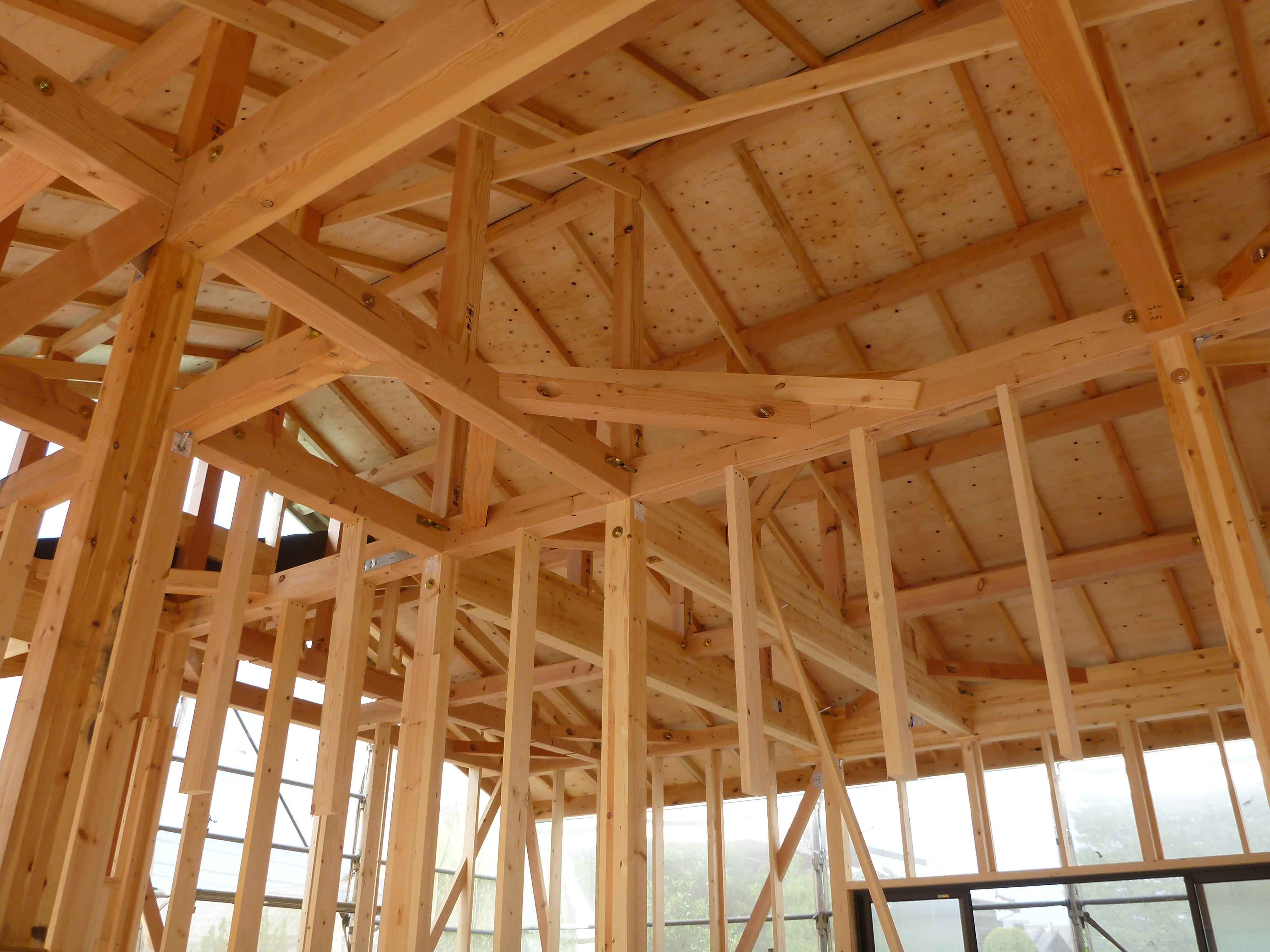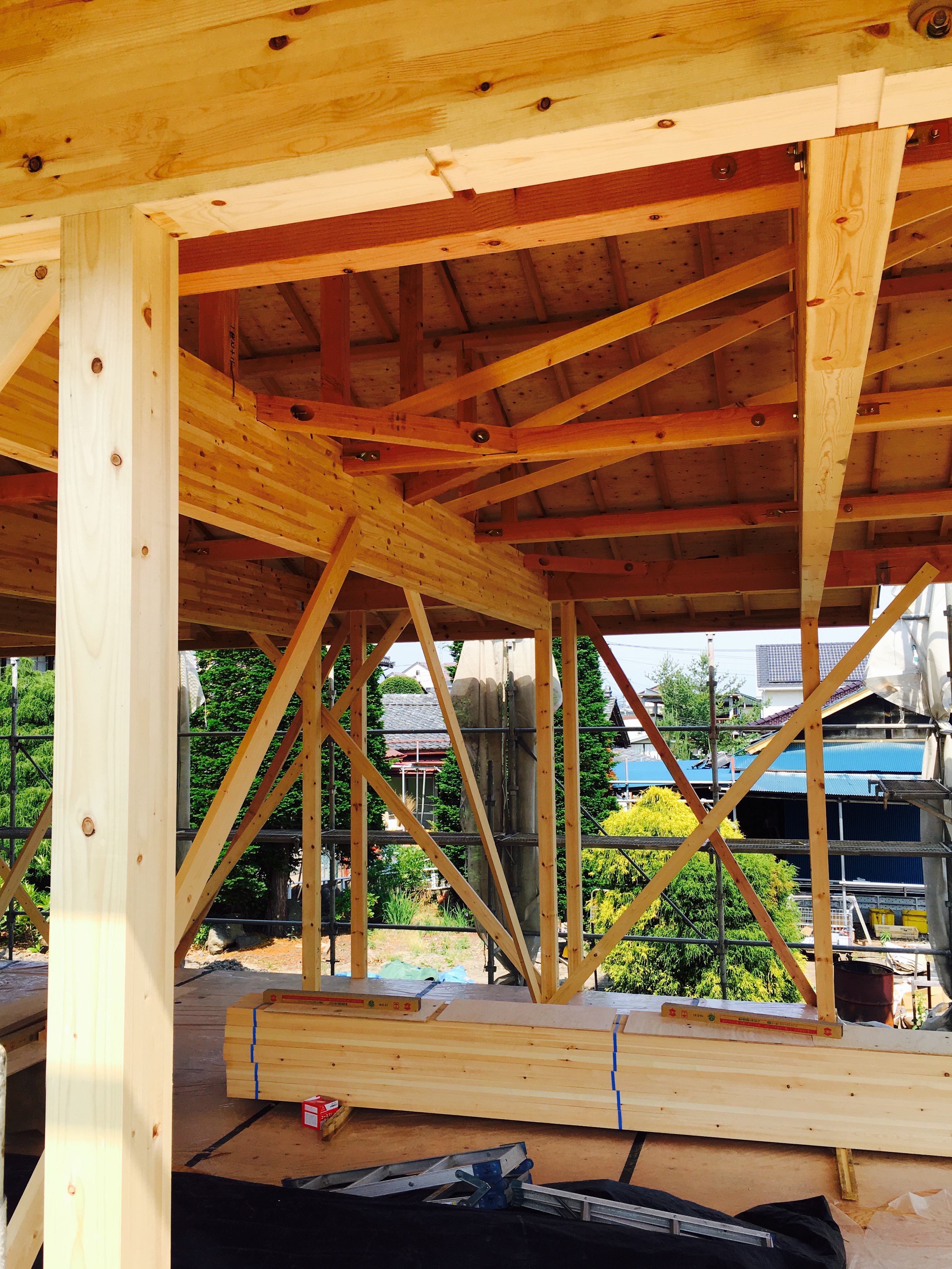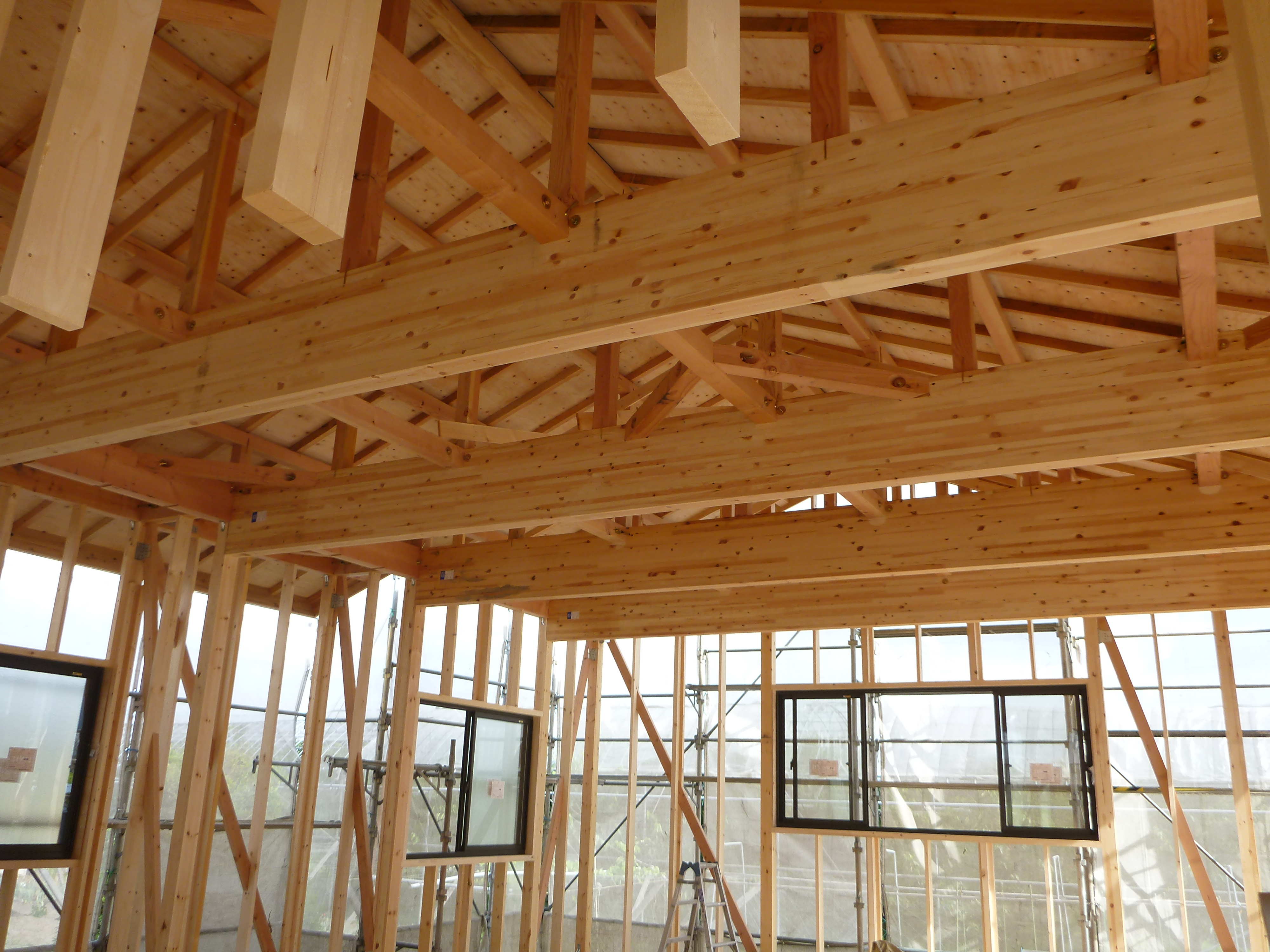 この大きな梁で3間半の広い間口がとれるそうです(^^)