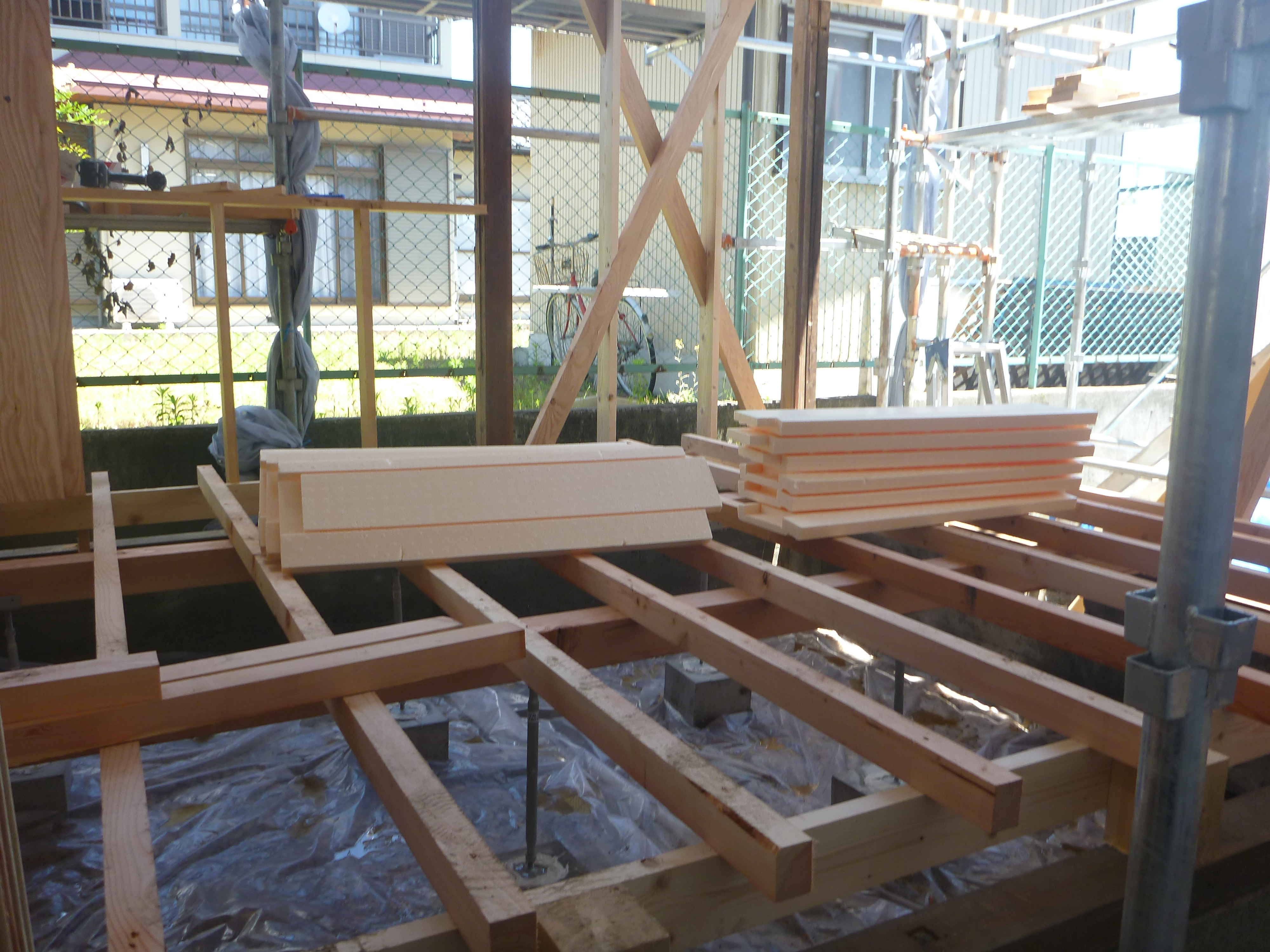 これから床に断熱材をいれるところでした!(^^)!