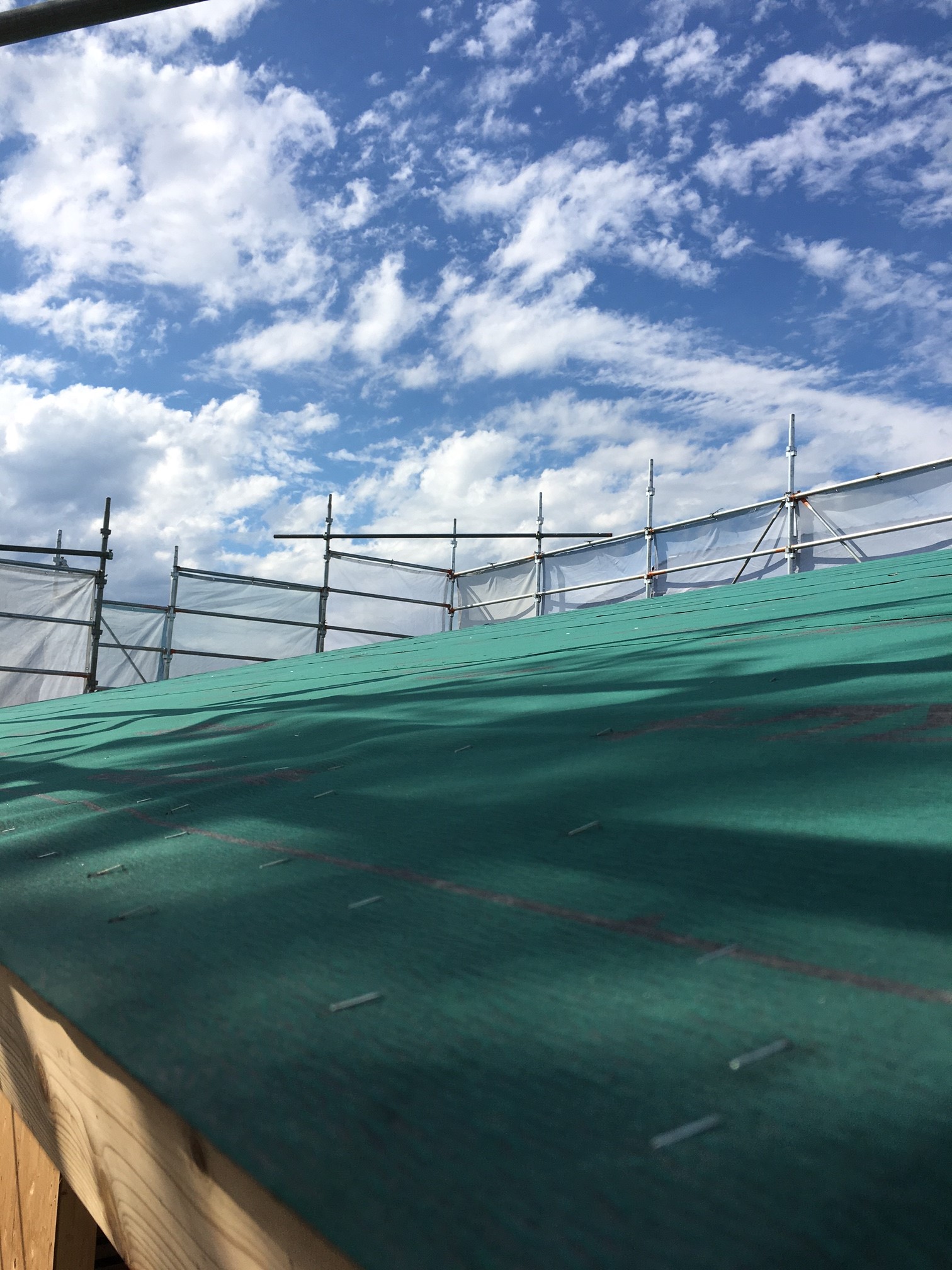 現在の現場は、『サッシ』の取付が完了し、『屋根』も葺き終っているようです。