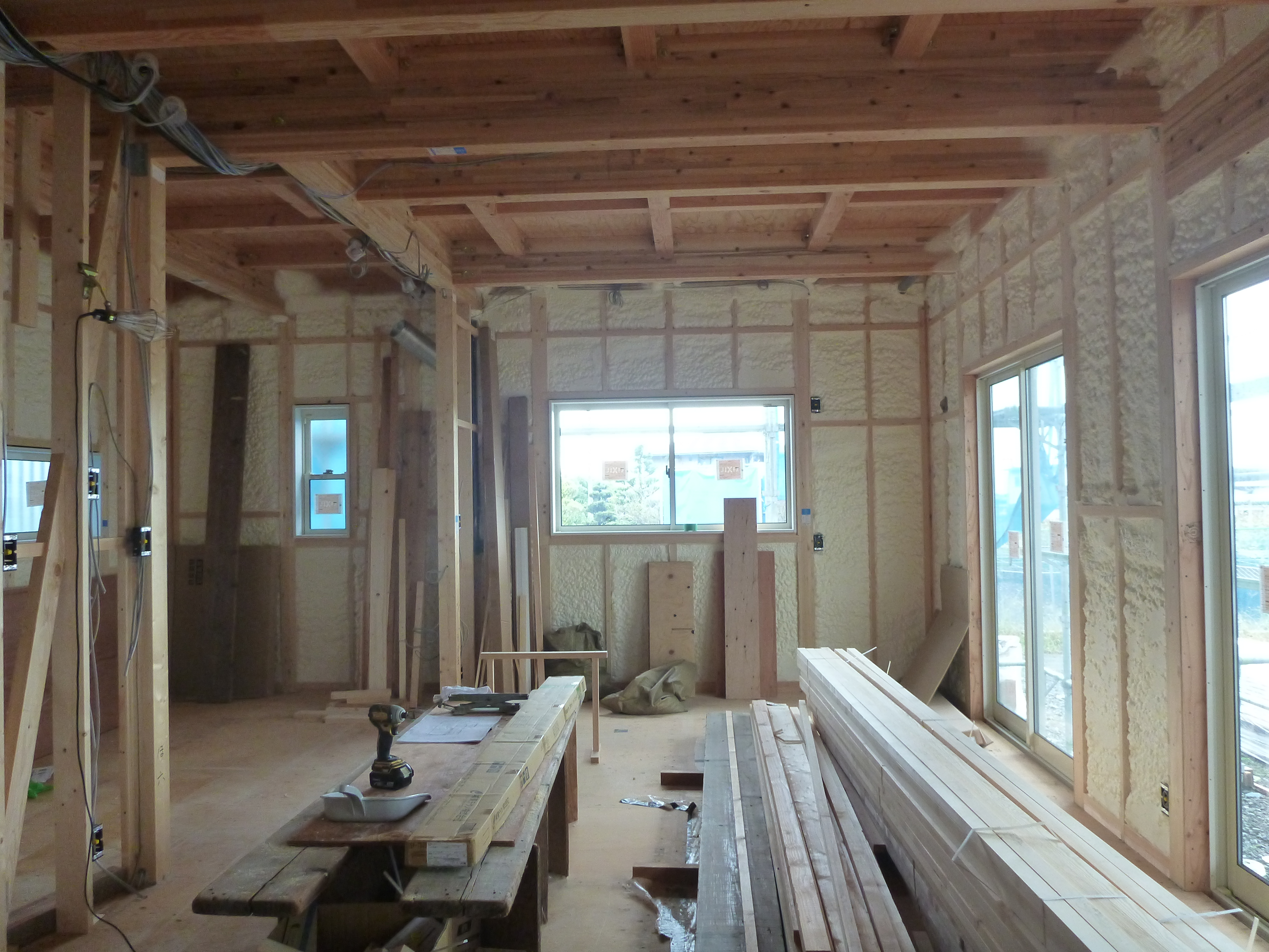 断熱材が吹き付けてありました!!