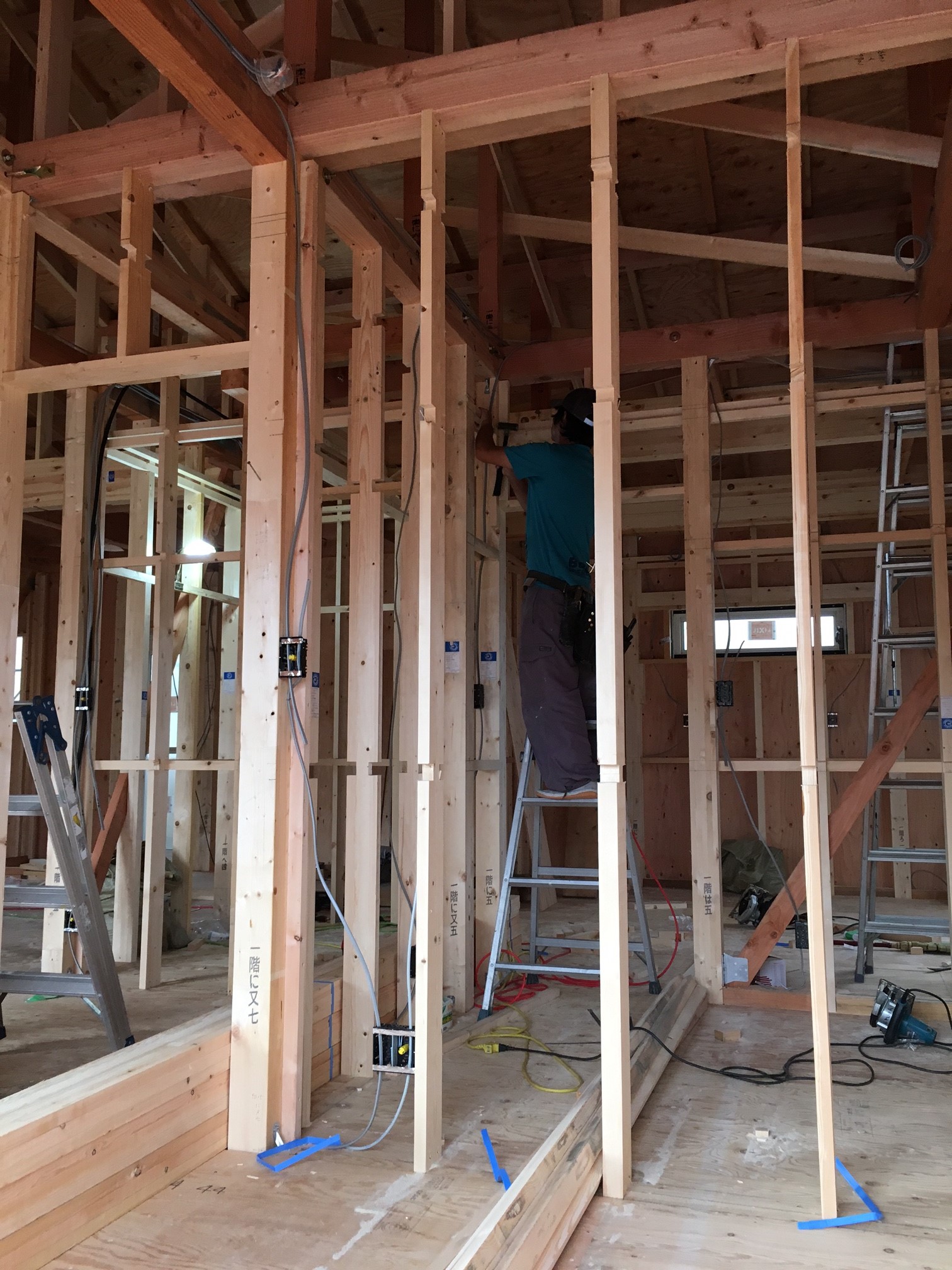 この日は、大工さん以外に電気屋さんがいて電気の配線などをしていました!(^^)!