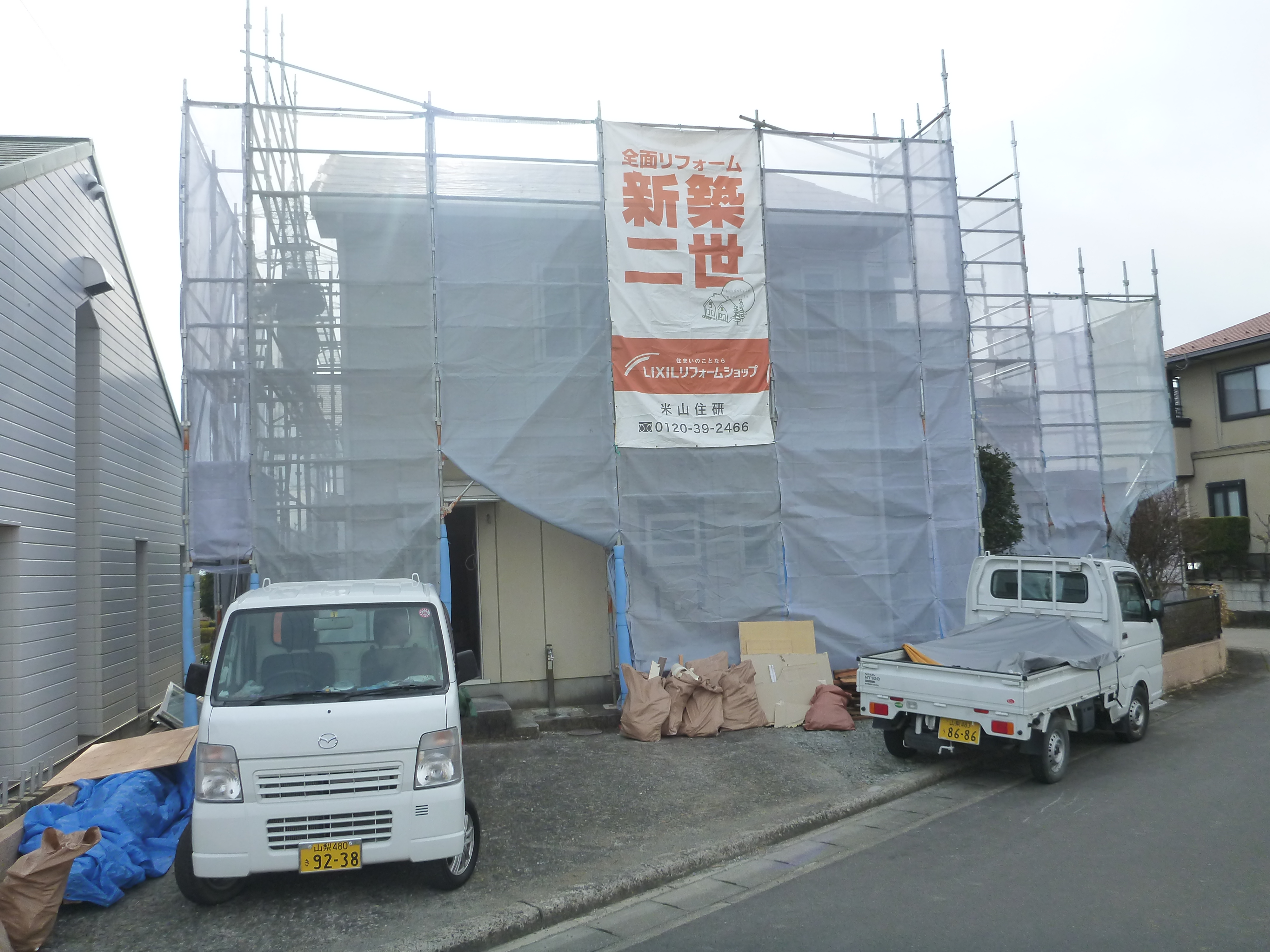 現在、LDKの改修工事と屋根工事をしているところでした!!