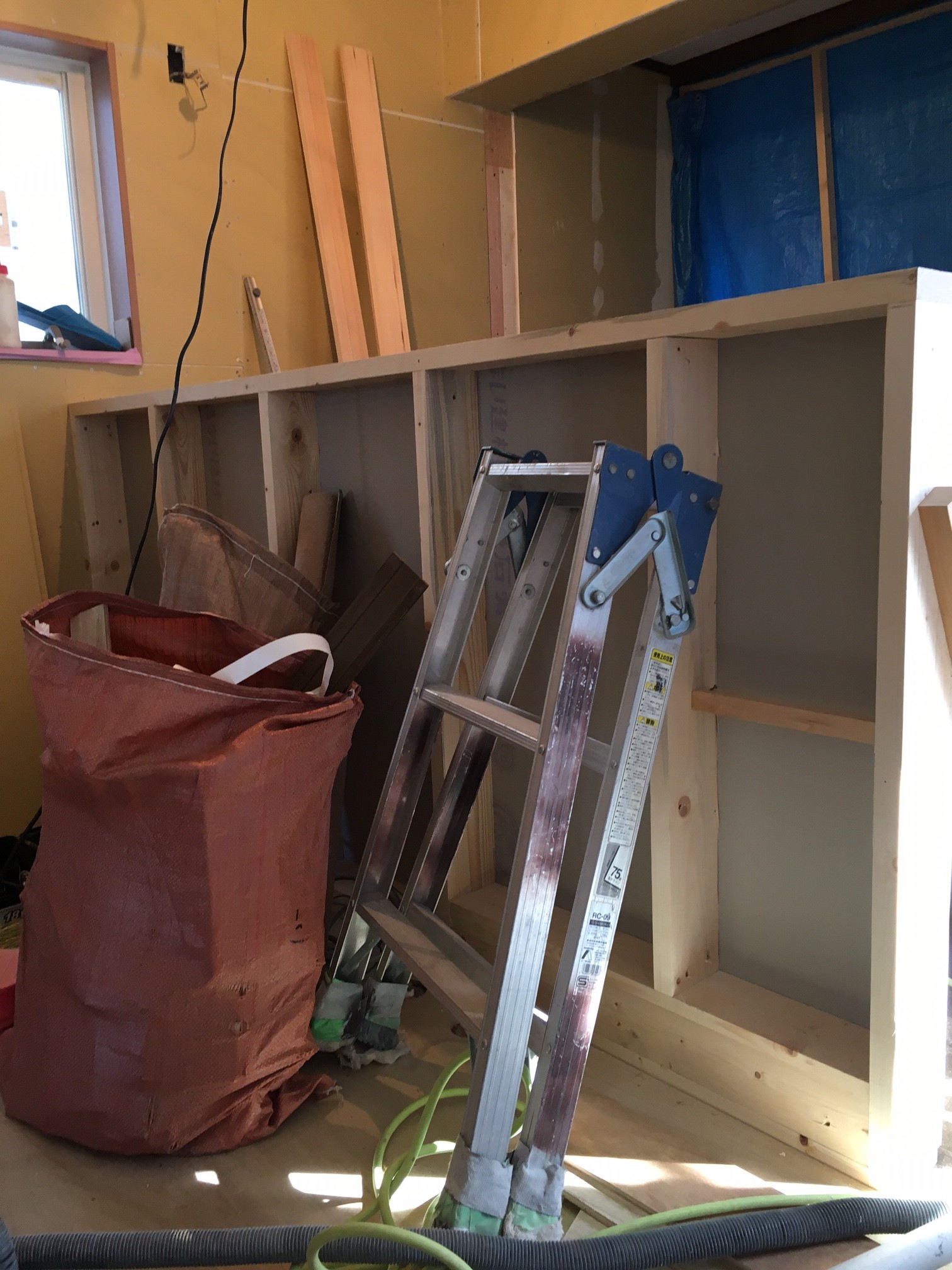 内部は、壁に新しい『断熱材』が入り、ボードも張ってある状態でした。
