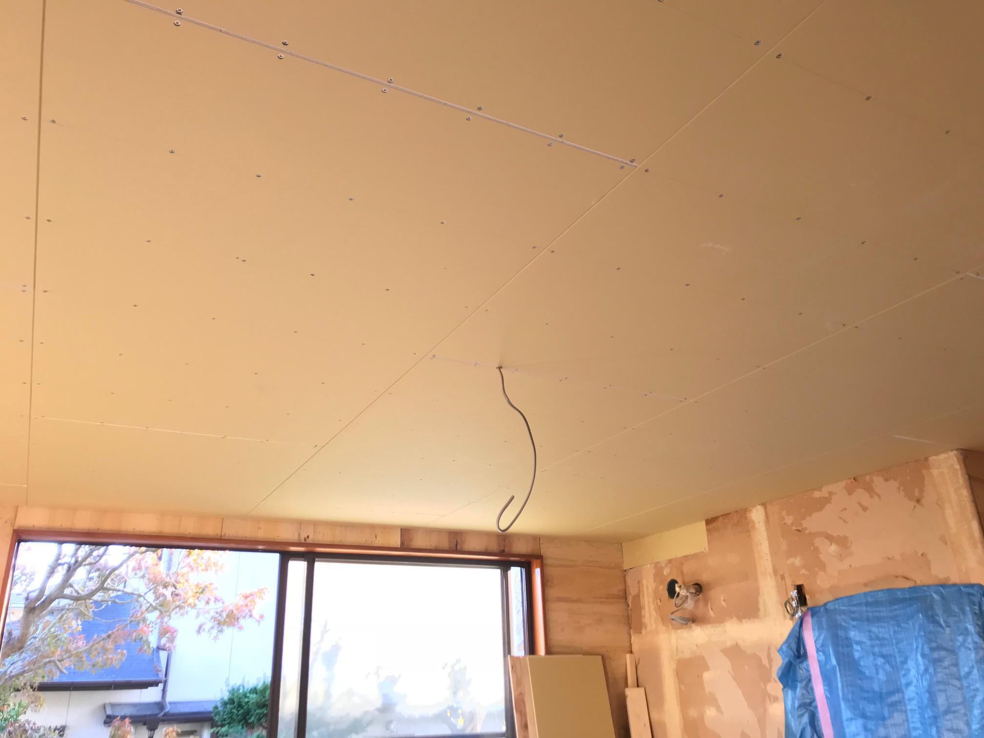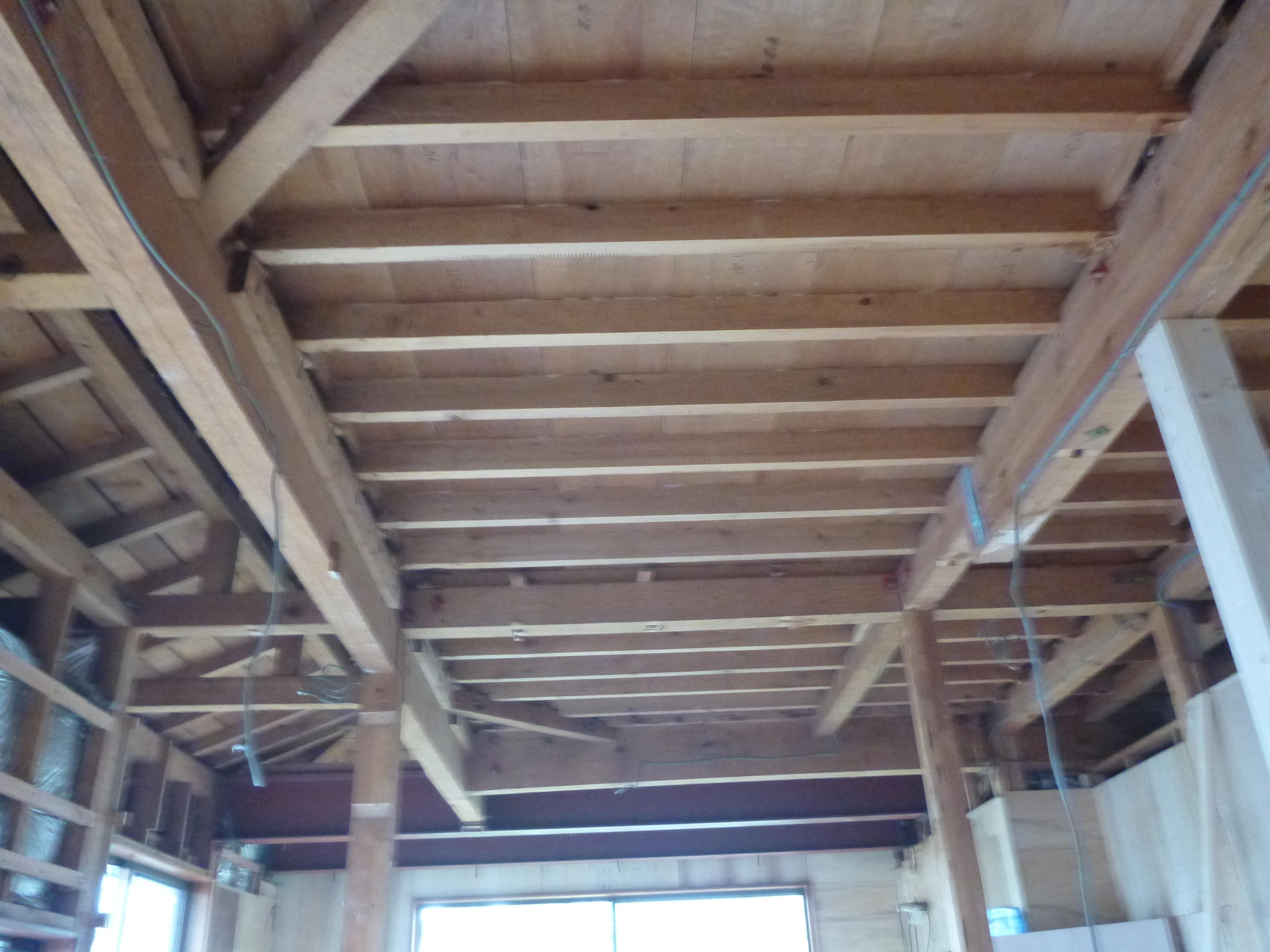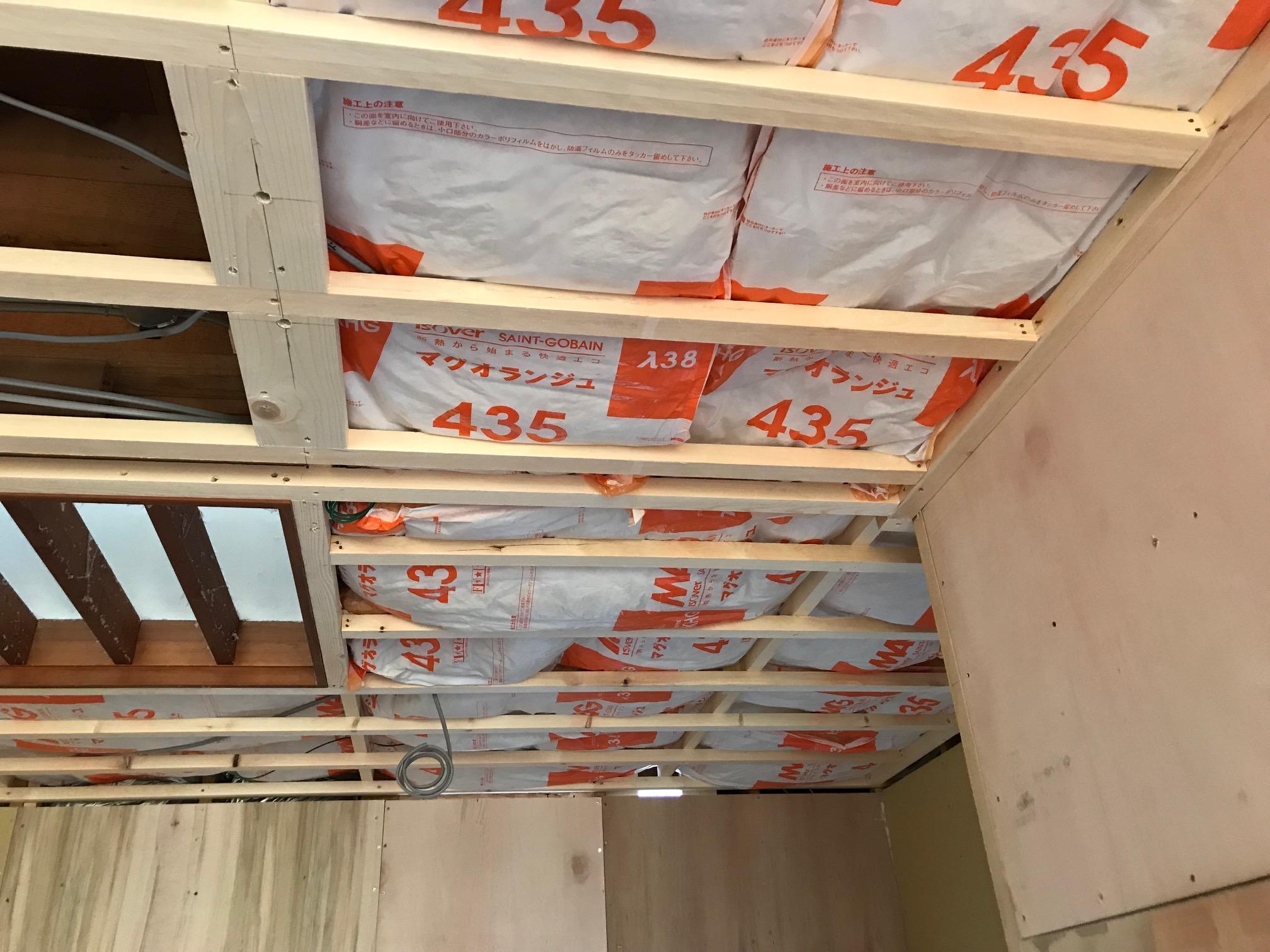今週は天井を張り、床の「断熱パネル」を敷く作業に取り掛かっています。