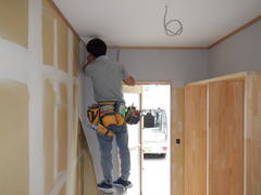 内部は内装業者さんが、クロス(天井・壁)を貼ってます。