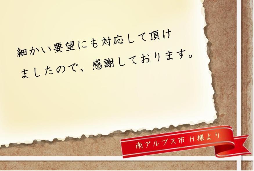 アフターサービス、リフォーム、注文住宅、不動産相談など、今後ともよろしくお願いいたします。