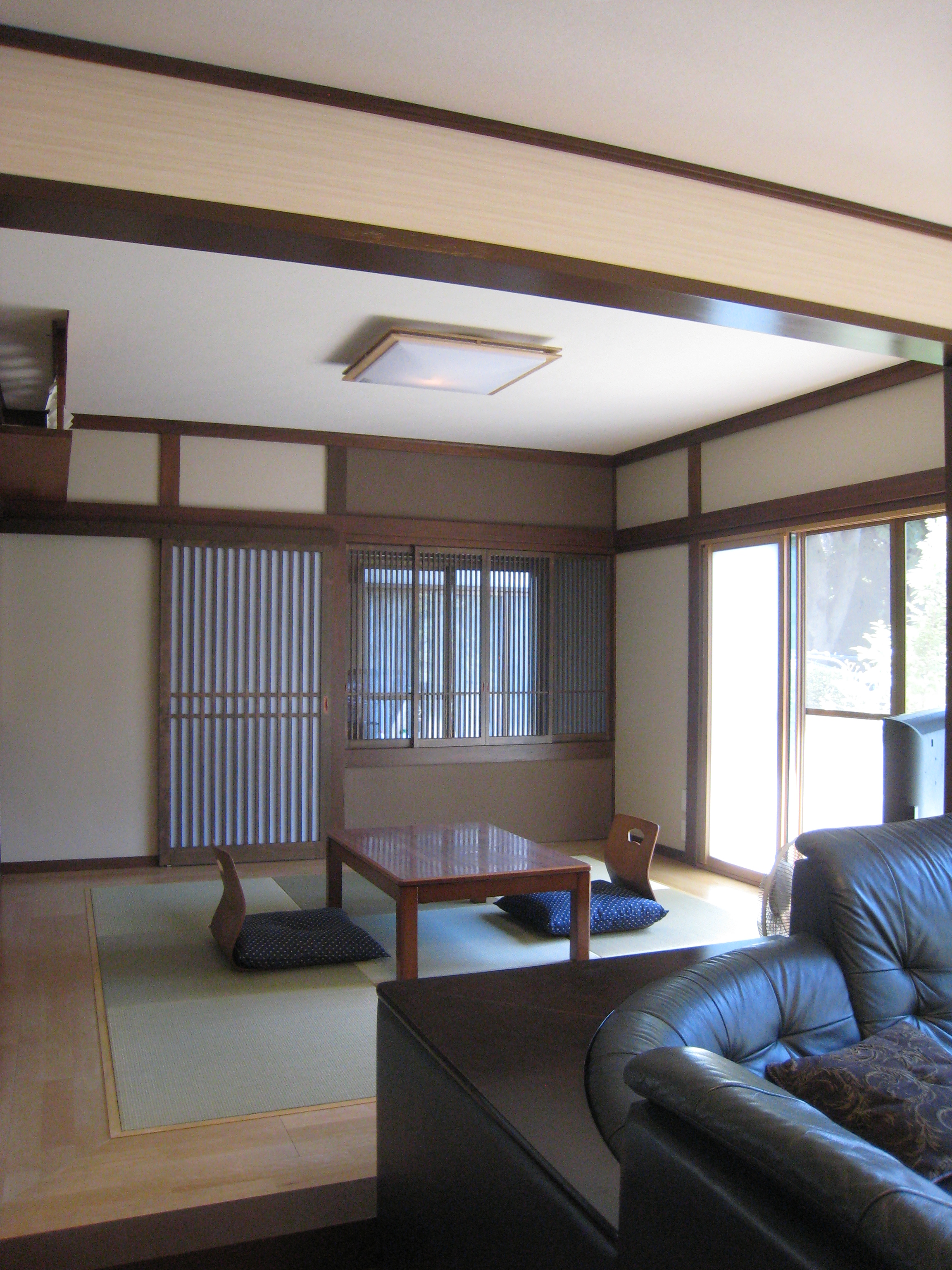 床下からの隙間風を防ぎたい、あたたかい部屋にしたいなどとご要望いただきLDK空間と隣接する和室空間を全面リフォーム。 明るく開放的なLDKに生まれかわりました。 又、格子戸や珪藻土などで仕上げた和室はデザイン的にも優れた空間となりました。
