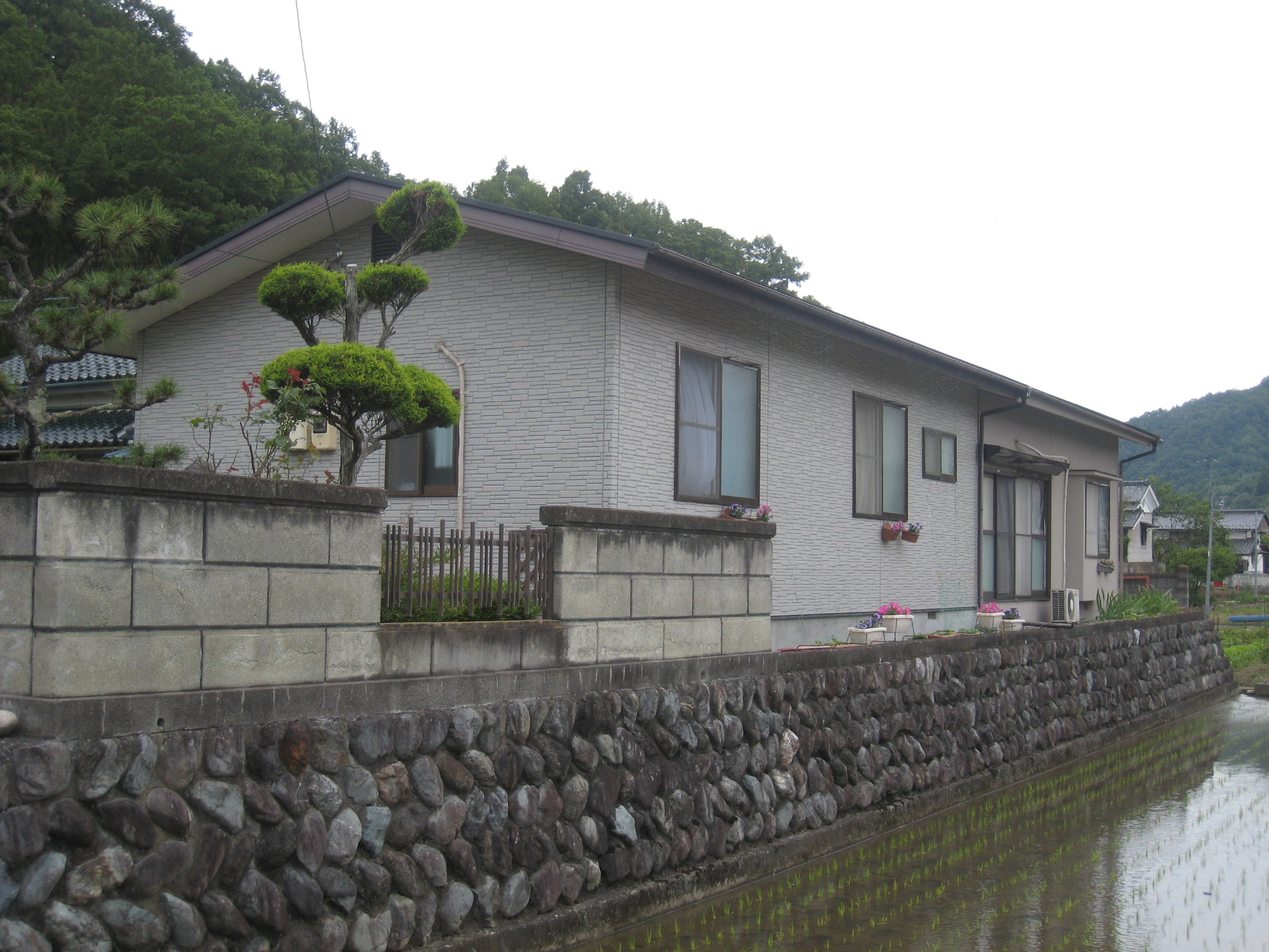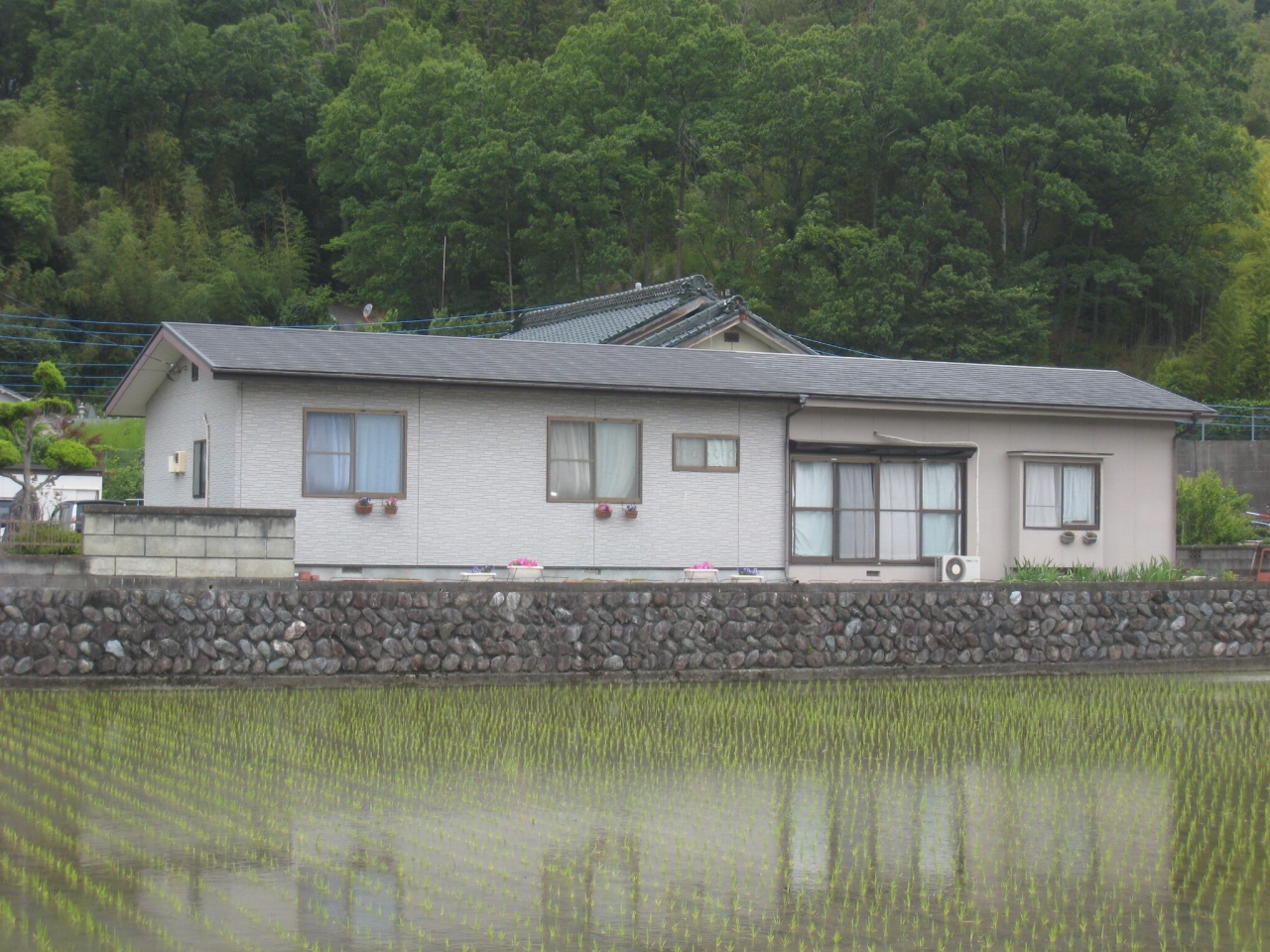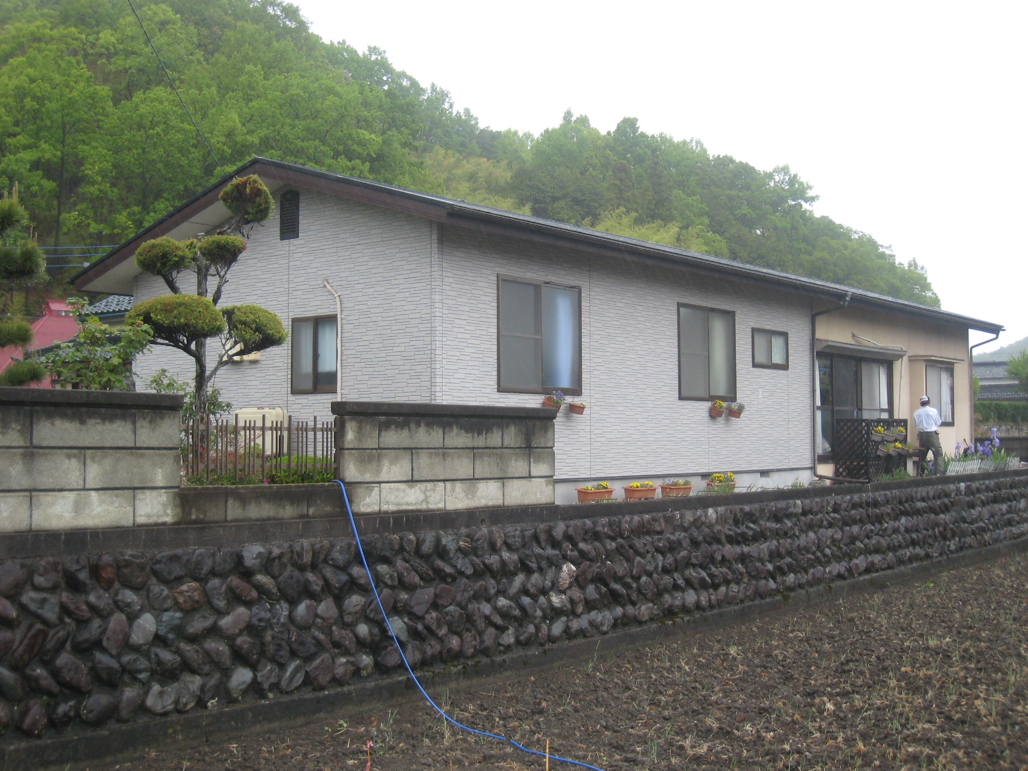外壁塗替リフォーム 10年が経過し汚れや色褪せが目立ってきた外壁。数年前、増築した部分の色に合わせて塗替え。小さなクラックも補修しながらのリシン吹付!新築のように生まれかわりました!写真右半分が色調を合わせてリフォームした外壁です。