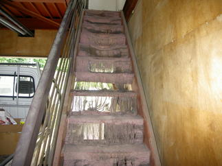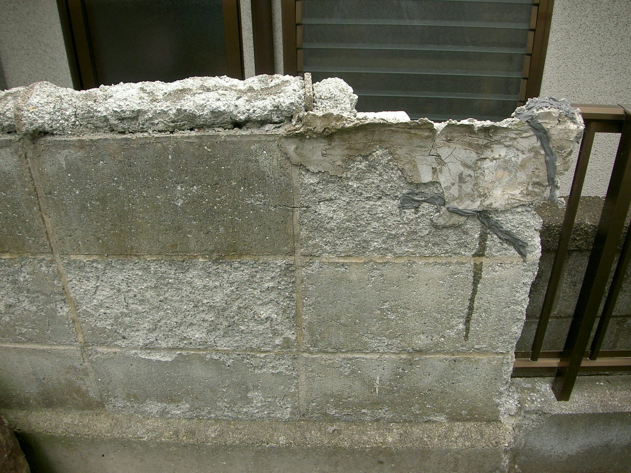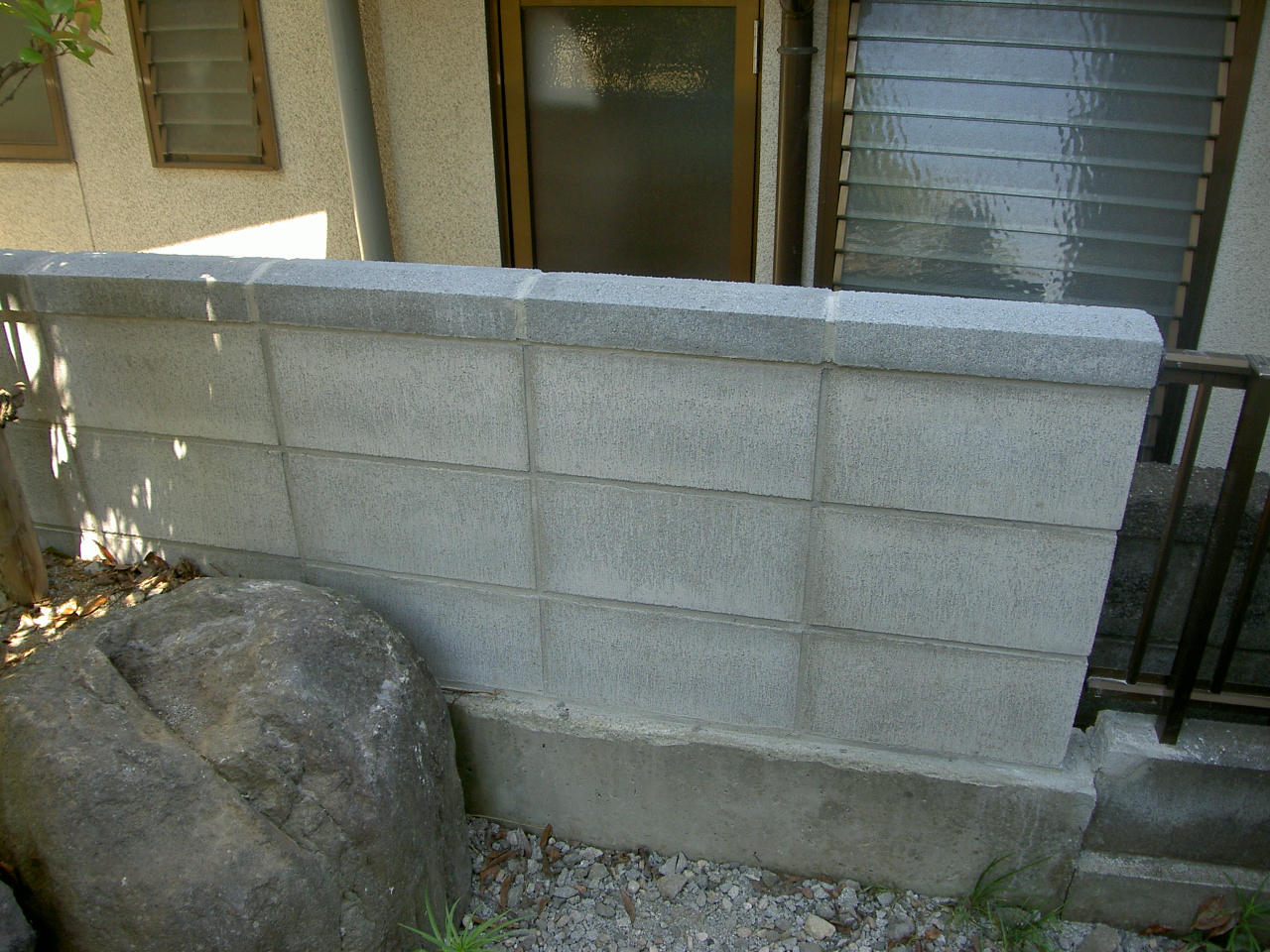 境界ブロック塀と外階段ノンスリップ 劣化してしまったブロック塀を一新。そして外階段の踏面はすべり止めを施しました。ブロックも笠木も生まれかわりました。