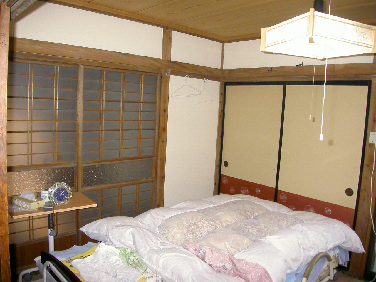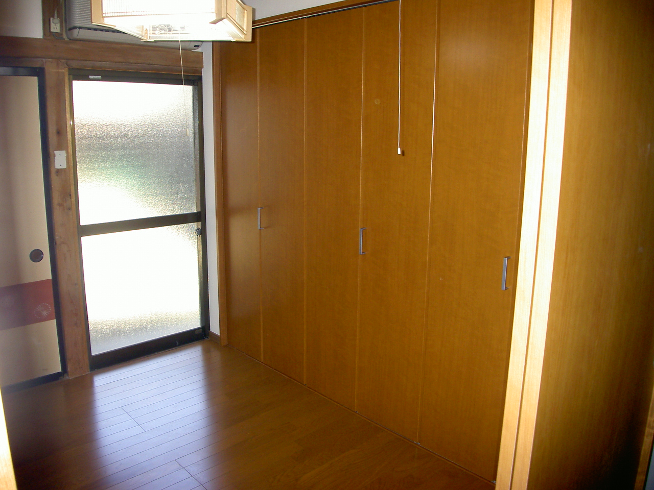 寝室リフォーム&収納設置 和室だった寝室を全面リフォーム!フローリングとビニールクロス貼りの洋間に変身!!そしてクローゼットも備えつけお部屋の中はスッキリ!!!ナチュラル色のフローリングと折れ戸で洋間に変身