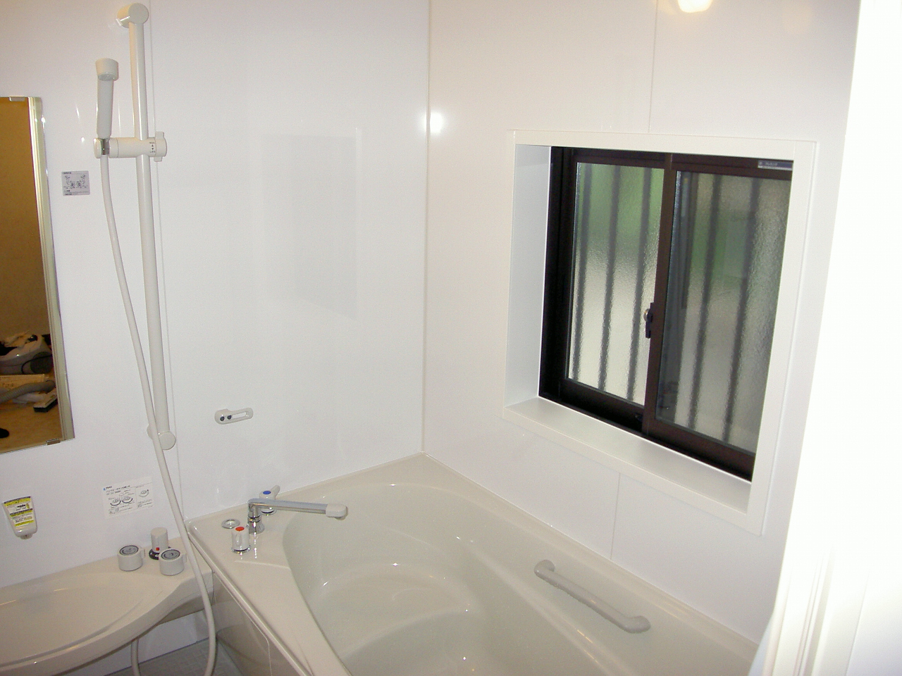 浴室リフォーム ベージュ系の落ち着きある浴室空間に変身!デザイン性も機能性も格段にアップ。もちろんエコポイントもゲット!! あたたかみ感じるベージュ系の浴室