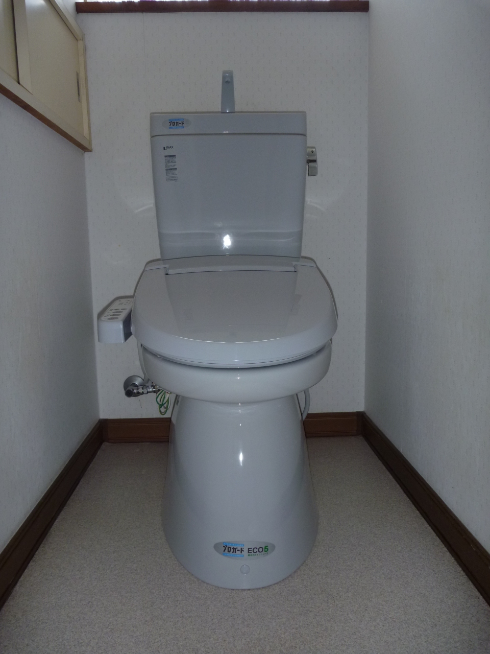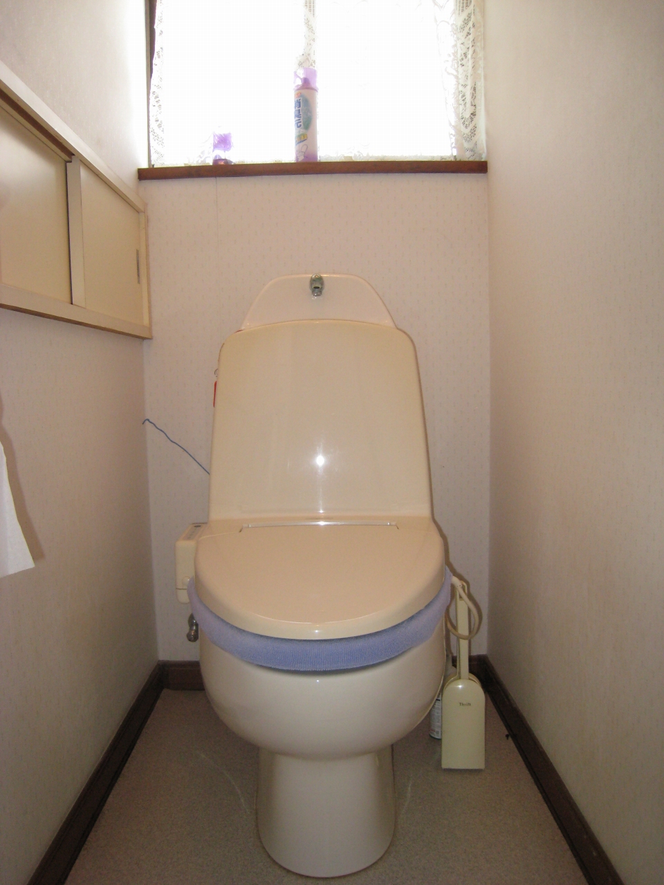 シャワートイレリフォーム 使っていた便器が故障してしまったことを機にシャワー付き便器に交換!清潔感あふれる特注のブルーグレー色!もちろん、節水型なのでお財布にも優しいリフォームです!