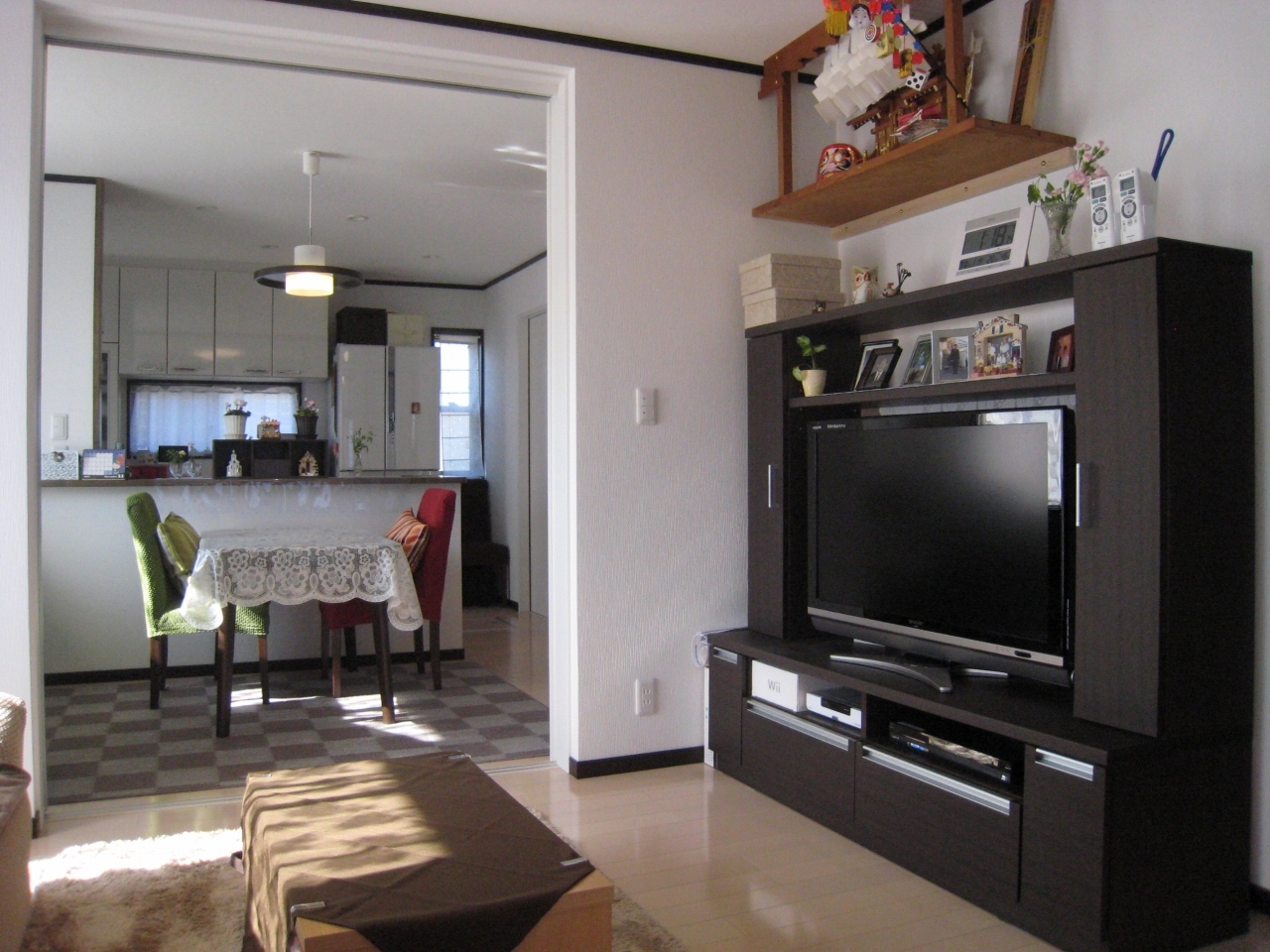 ダイニングキッチンへと連続しているリビング空間は和室から洋室へとリフォーム。