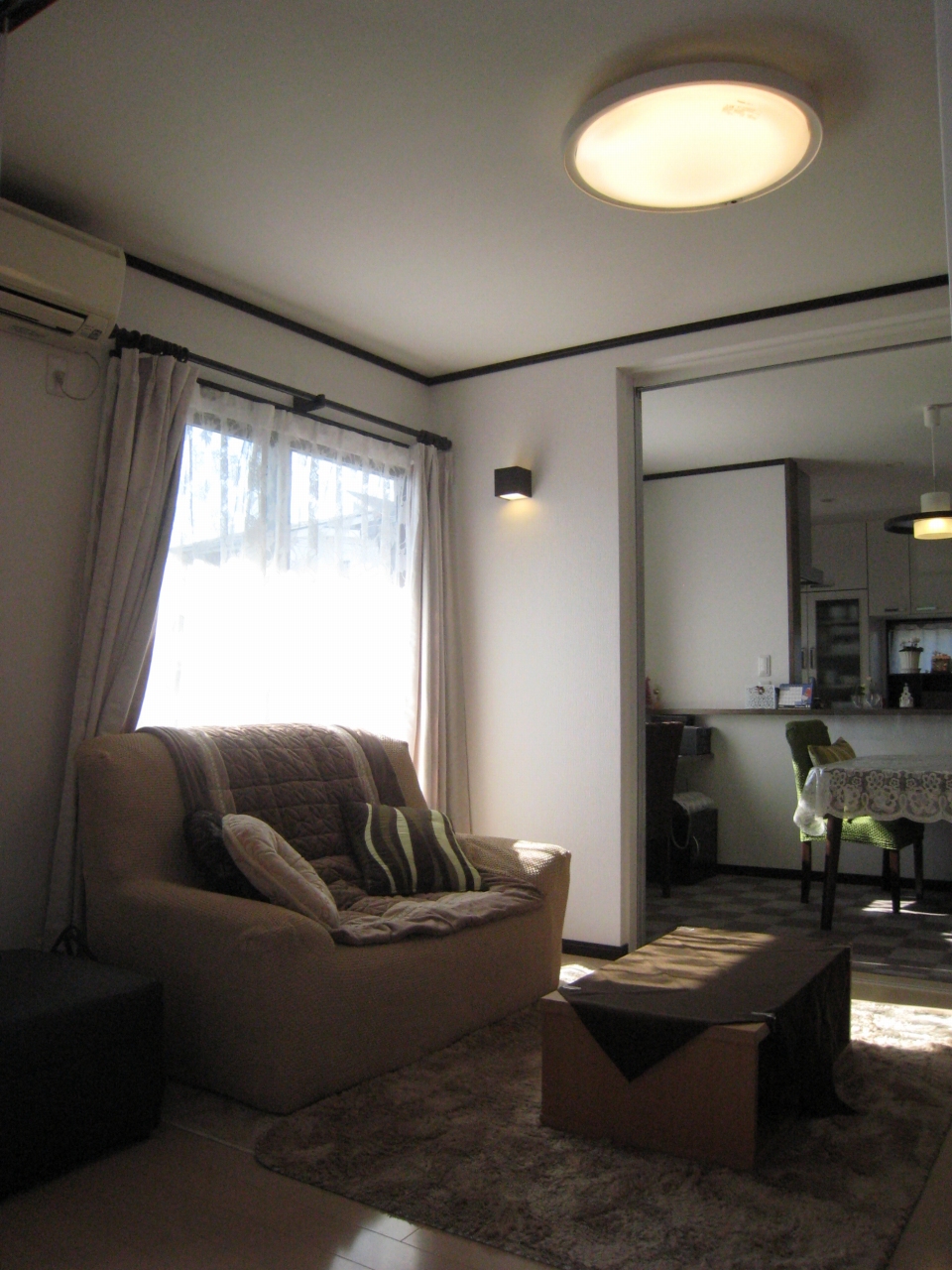 奥和室は将来、寝室として利用。明るい配色の壁や天井とダーク色に塗り替えた木部とのコントラストが部屋の雰囲気に落ち着きを感じさせます。