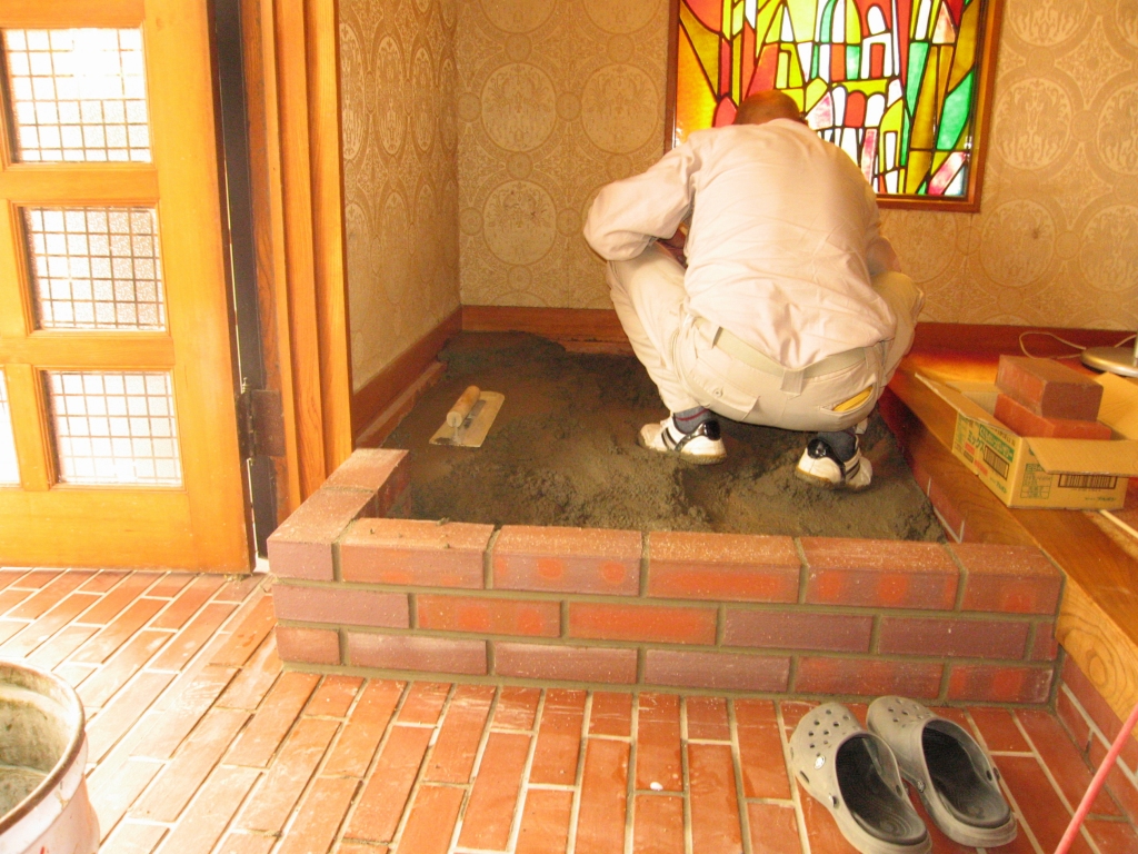 吹き抜けの玄関にお客様憧れの暖炉を設置しました。 1階2階ともに家全体が暖かくなったのはもちろんのこと、見ているだけでも心地よい気分になり癒されます。 高熱に対してもレンガや耐熱板でばっちり施工させていただきました。 外部にはお客様自家製のマキ小屋も配置されています。