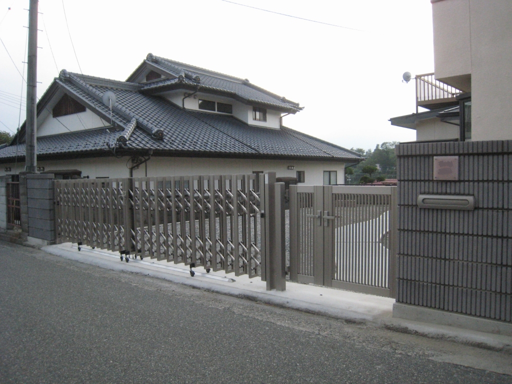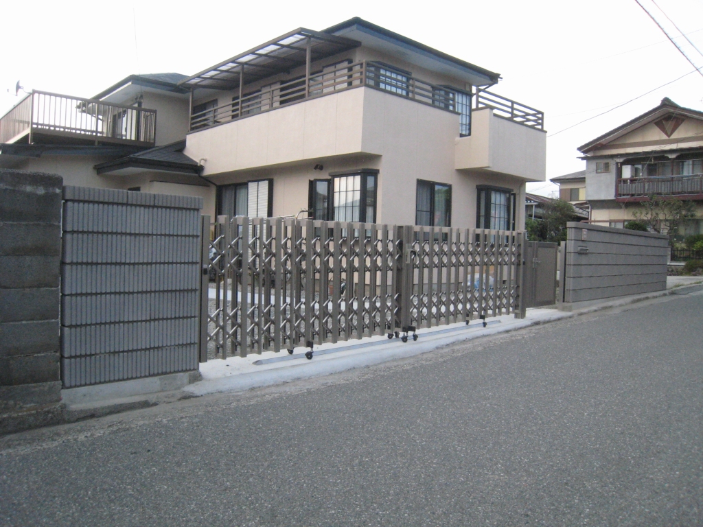 意外と車の通りが激しい道路沿いに塀と門扉を設置しました。 デザイン性でリーズナブルな化粧ブロックと通常のものより頑丈なアコーディオン門扉で 安全かつ安心なお住まいとなりました。 お見せできないのが残念ですがガラス表札にはとてもかわいらしい字体がデザインされています。