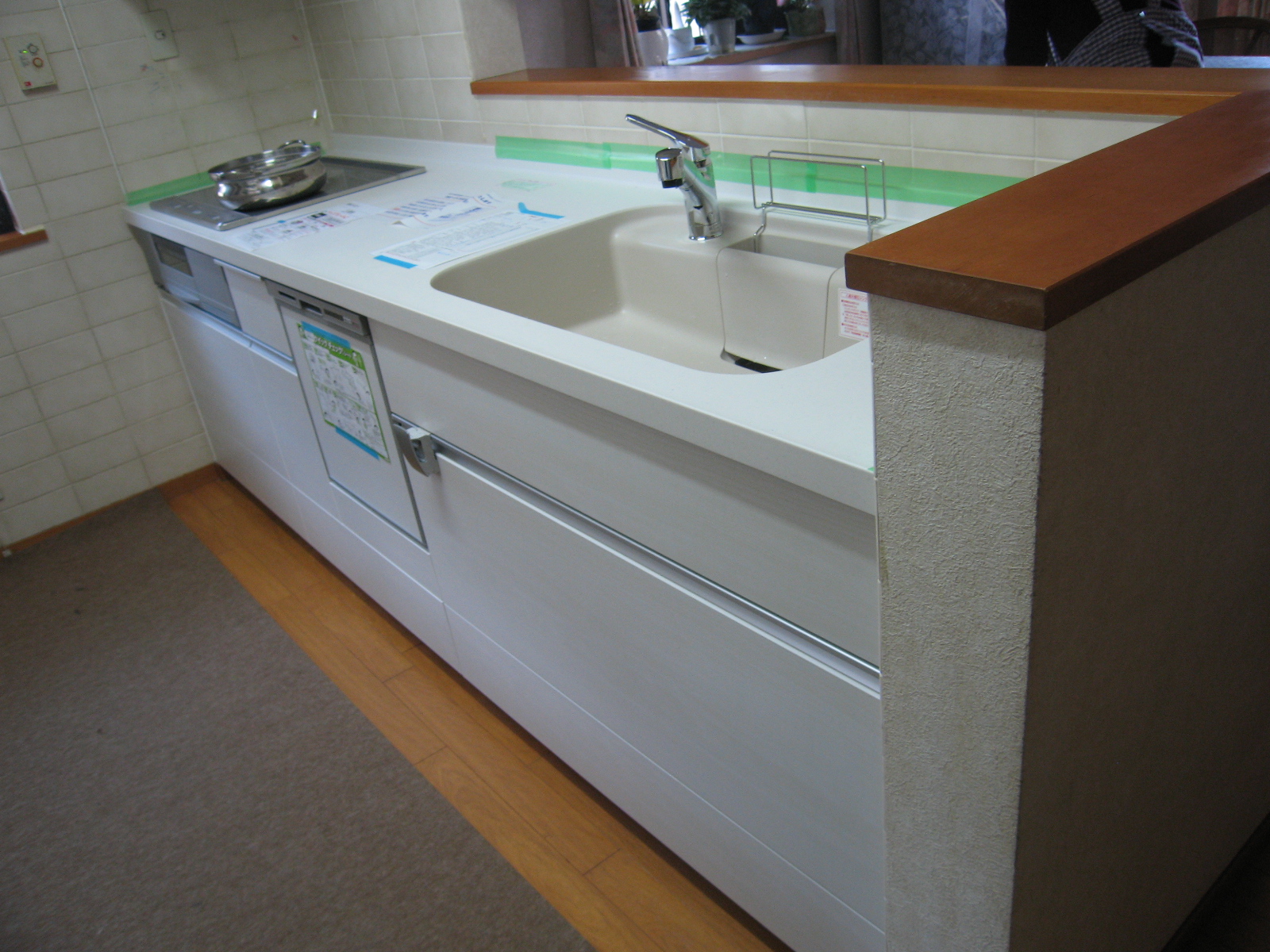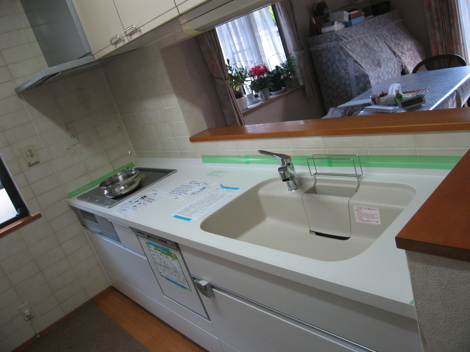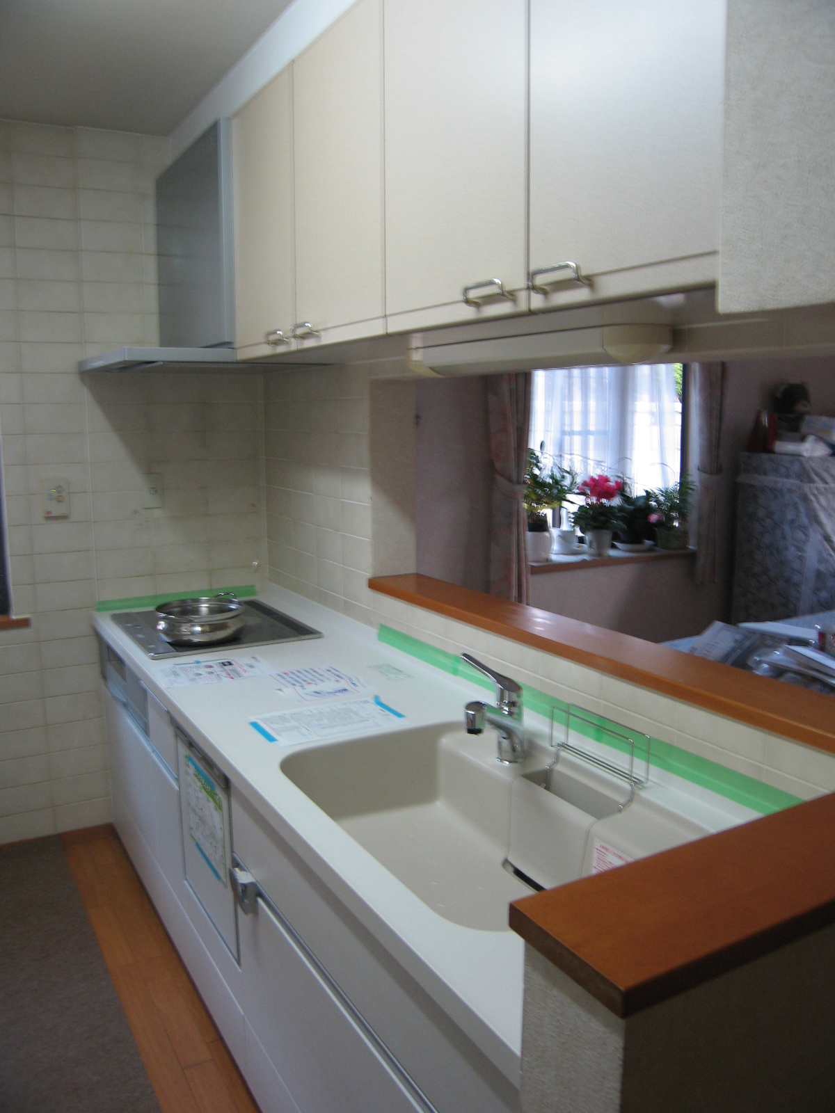年数は経たものの、奥様のお手入れが行き届きキレイな状態でした。 設備等の不具合からキッチン交換となりましたが、サイドの腰壁・タイル・吊戸はそのままに残すことにしました。 現場での作業はタイルなどを傷つけないよう…既存のキッチンの撤去はとても慎重に行っていただきました。 工程も順調に、仕上がりもキレイに納めていただきました。 以前より機能性・収納量もアップしただけでなく、明るく周囲とのデザインも違和感なくキレイにイメージアップしました。