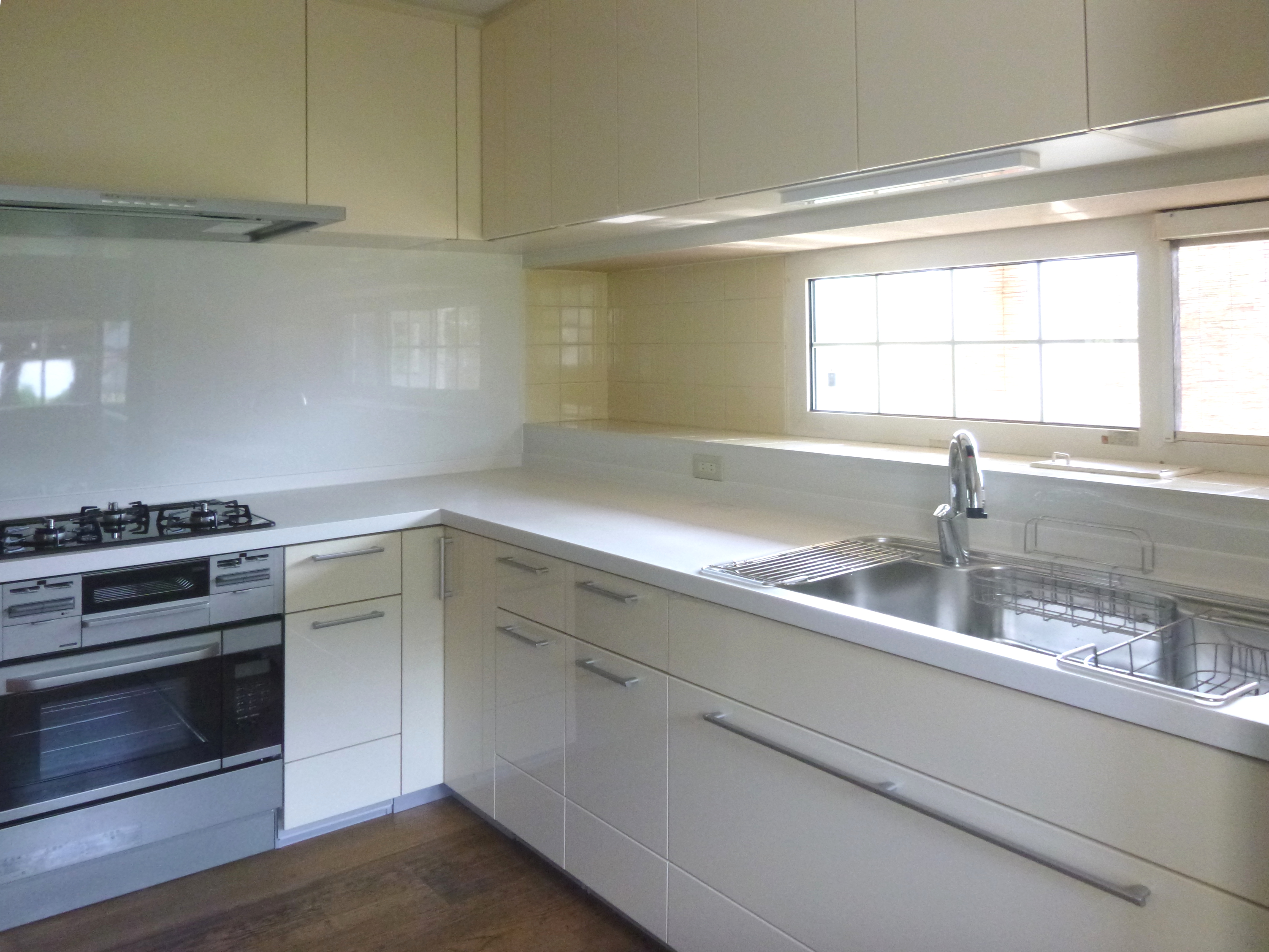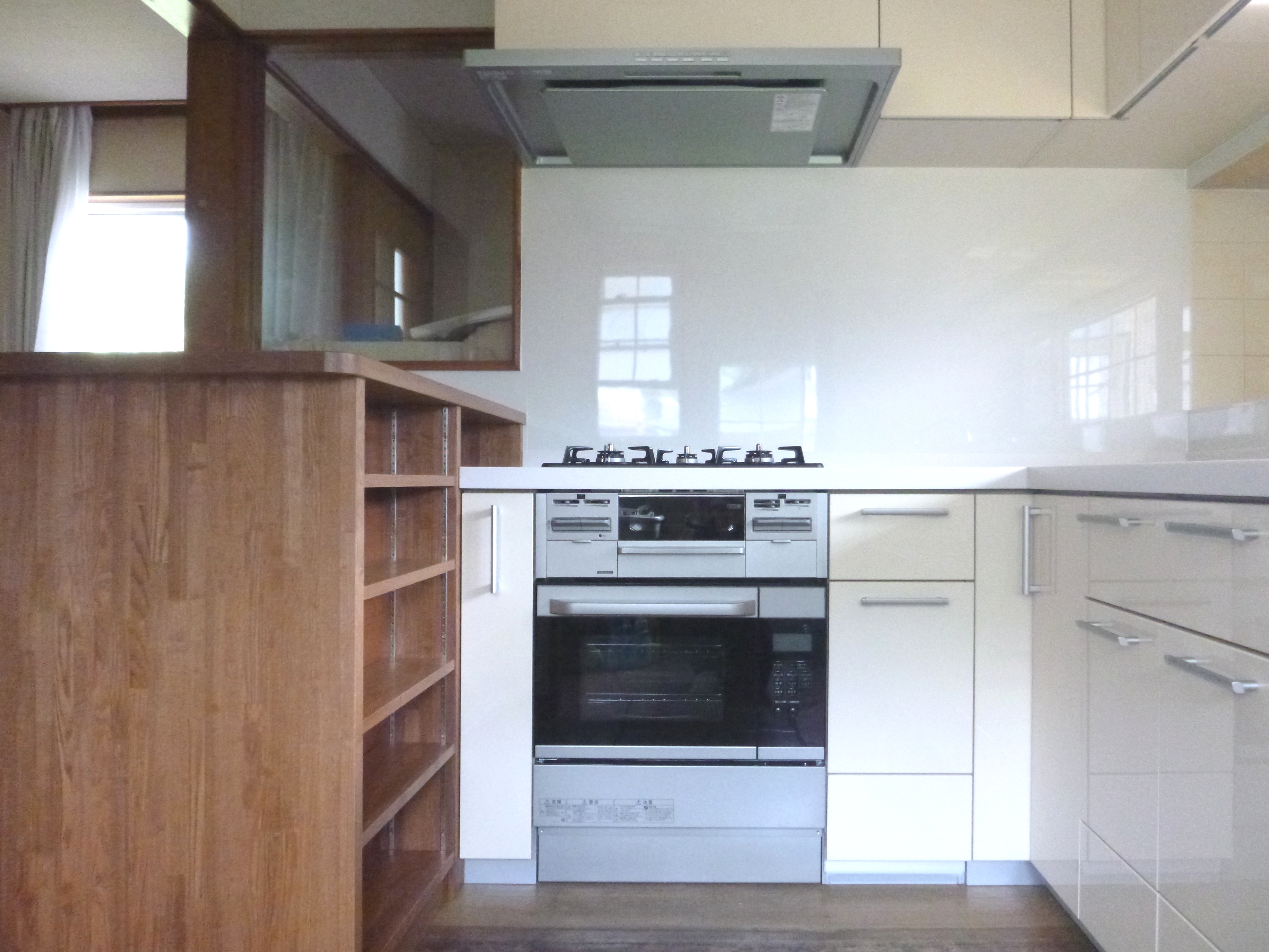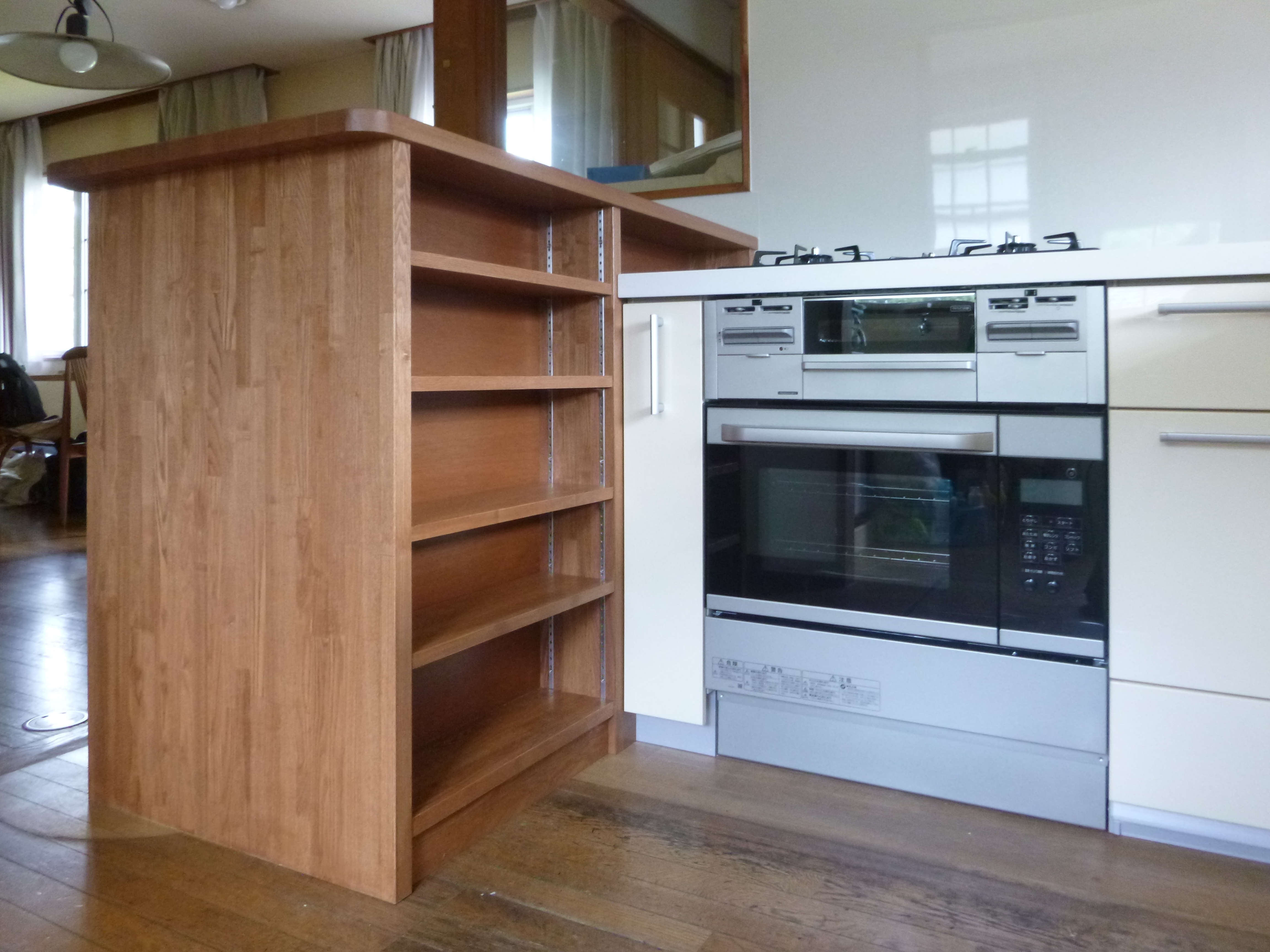 L型キッチンを交換し、オリジナルの収納カウンターを設置。収納量も増えより使いやすくなりました。