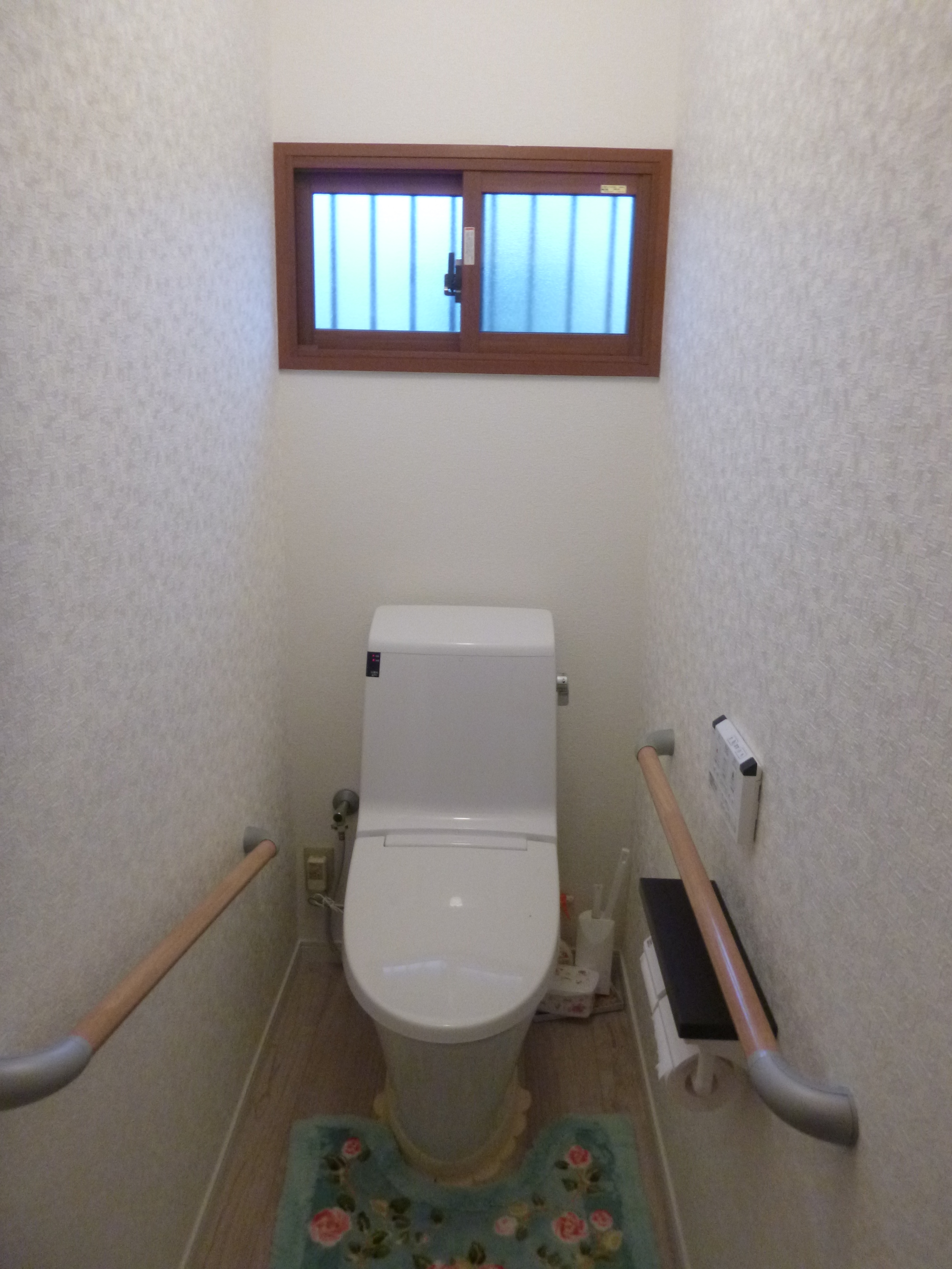 1Fトイレ・洗面脱衣室・浴室・2Fトイレの水廻りをリフォーム致しました。 既存の浴室はとても広く、タイル貼りで冬の寒さは厳しかったのですが、システムバス・二重の窓にしたことで機能も充実しました。 浴室に加え、洗面脱衣室・トイレ空間も機能性を充実したリフォームとなりました。