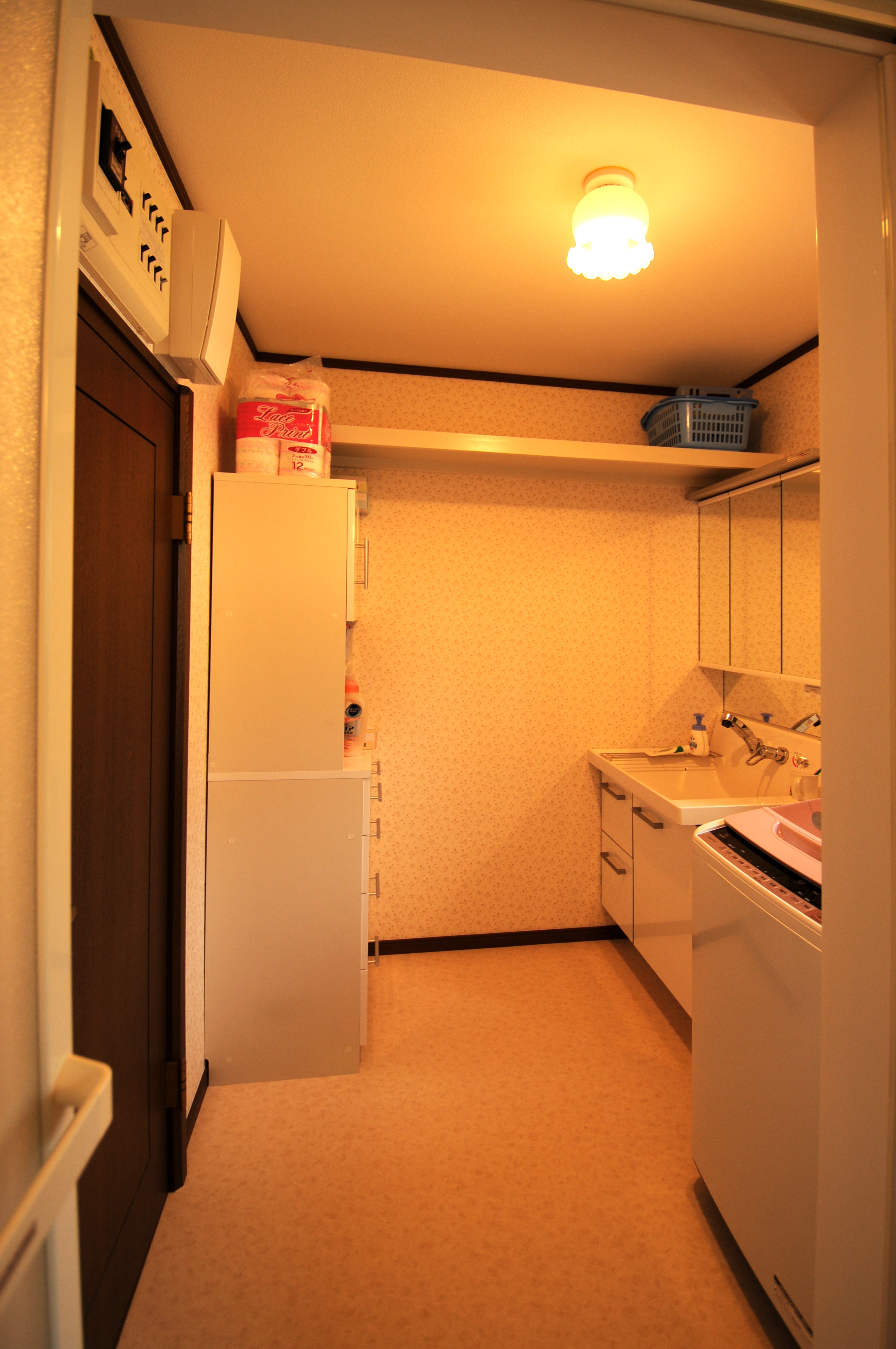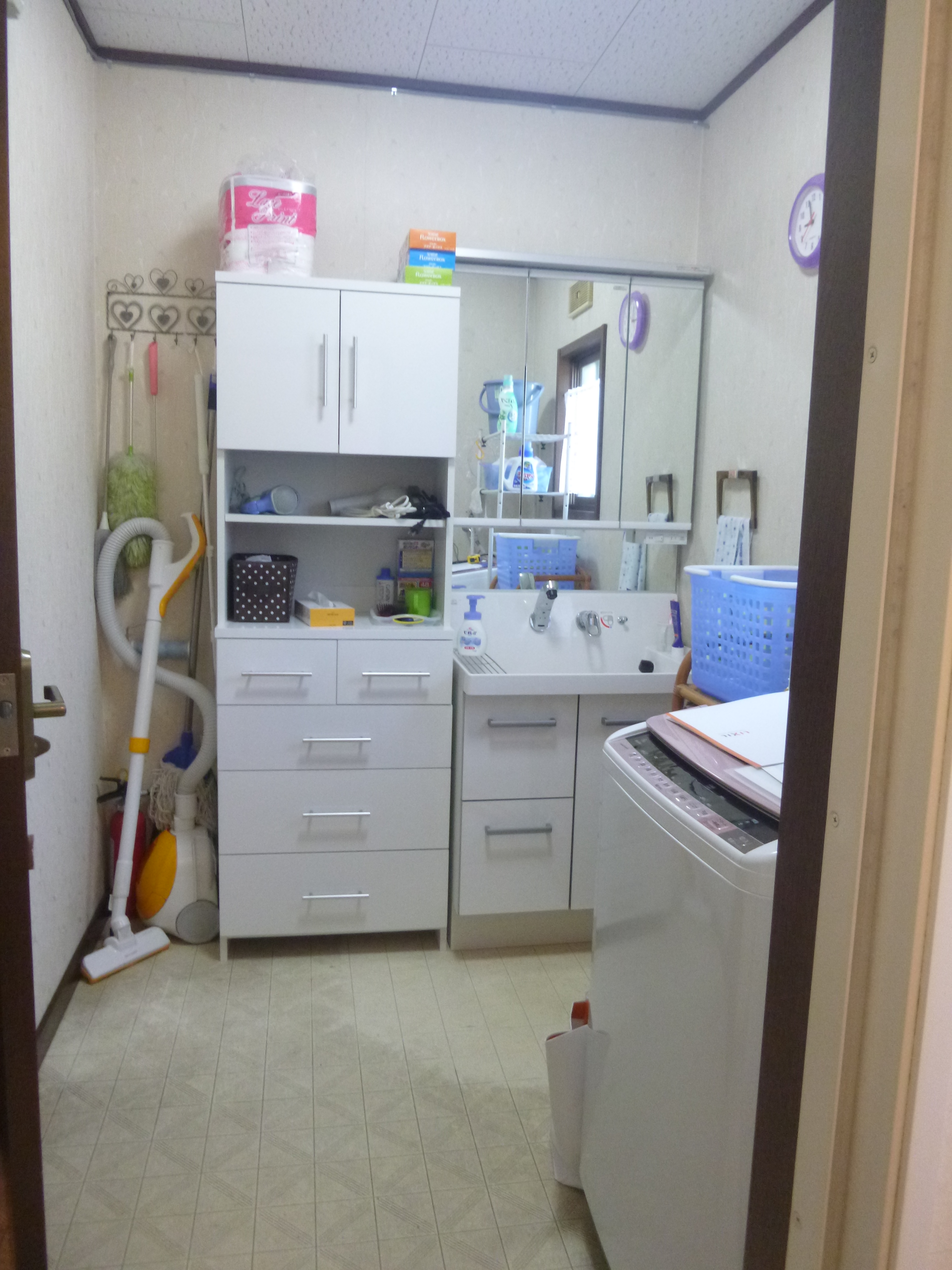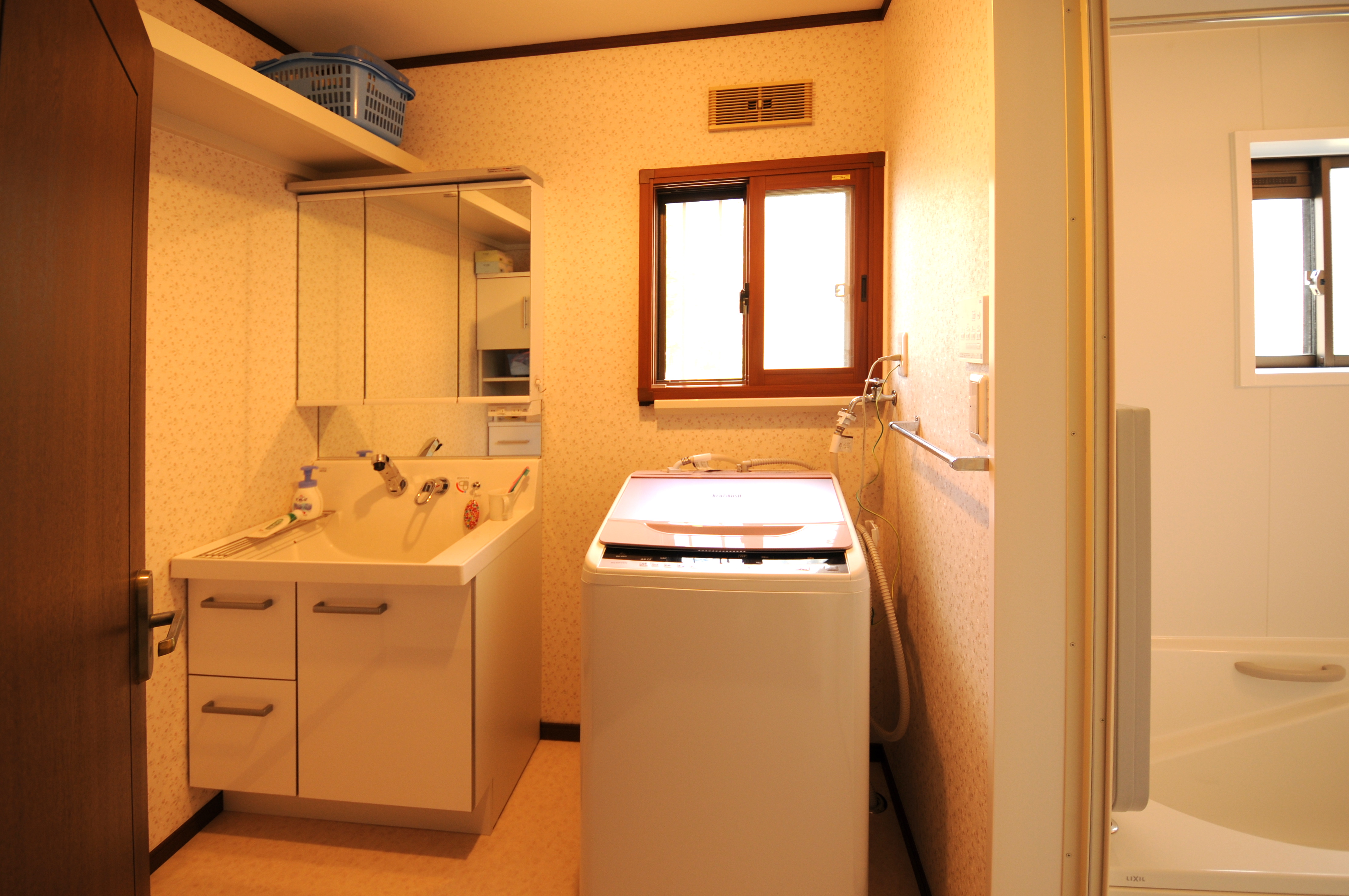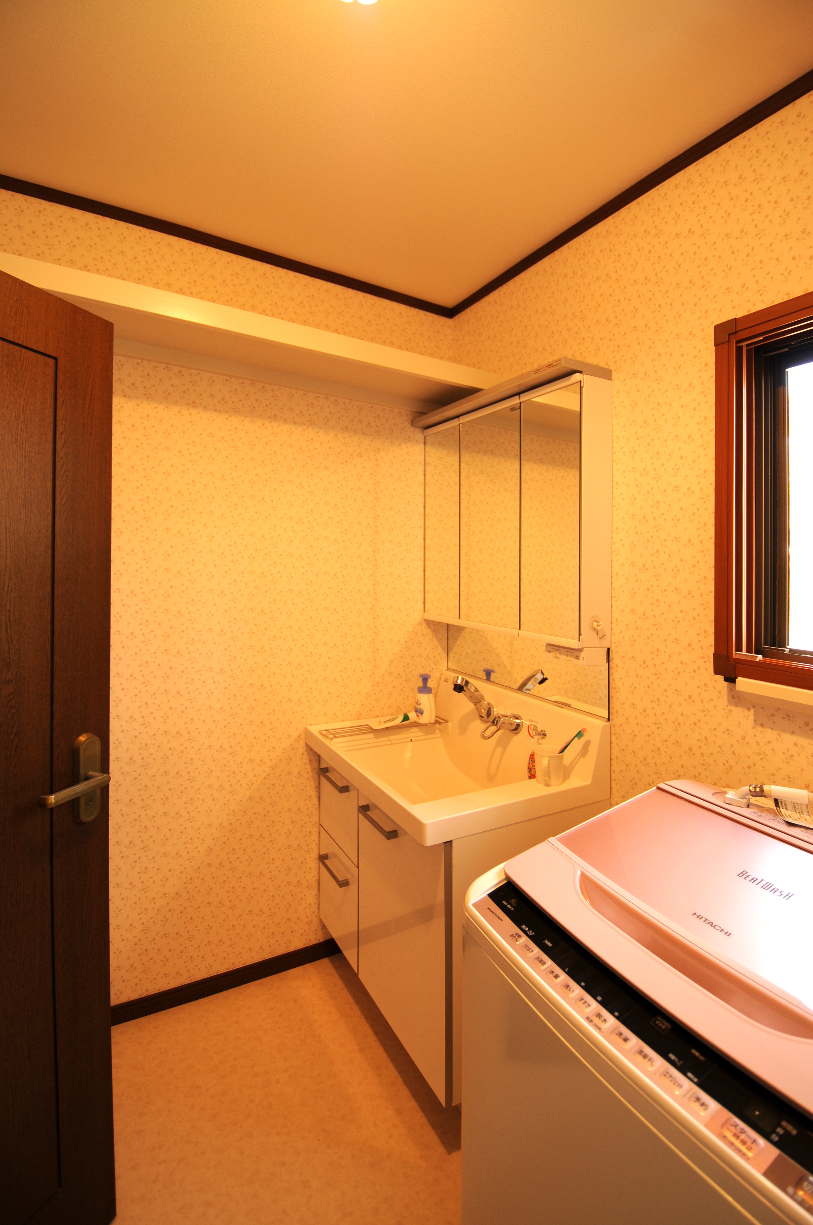 浴室は0.75坪から1坪サイズへ、足元にあった15cm程の段差も解消し、広々とした空間となりました。機能性はもちろんのこと、デザイン性共にアップし、更に使いやすい浴室となりました。洗面脱衣室は、当初から充分な広さがあったので、洗面化粧台のレイアウトを変更し、上部に棚を設置しただけでも以前よりも使いやすく、すっきりとした印象になりました。インプラスも設置したことで、以前のような冬場の寒さも軽減されると思います。