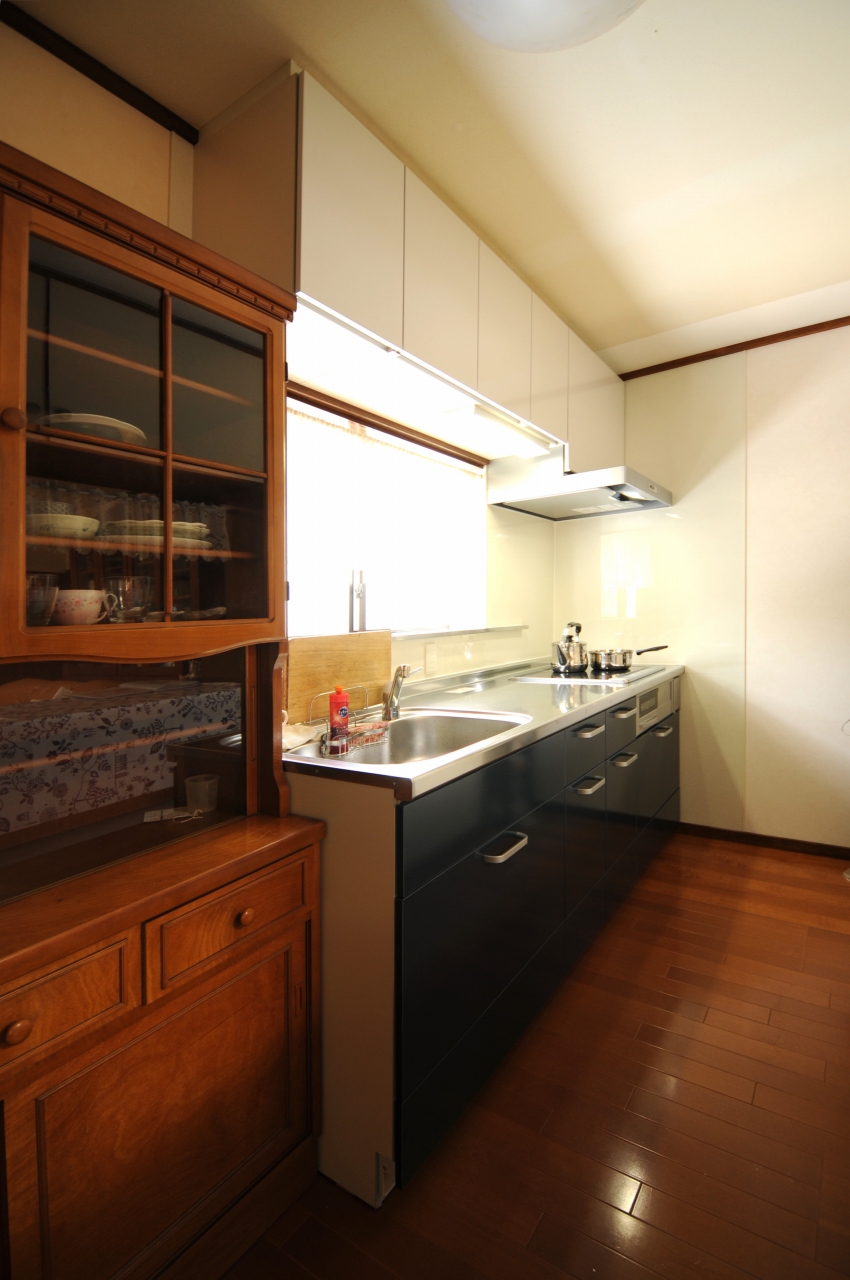キッチン、浴室、洗面室を使いやすく快適に暮らせるようリニューアル。キッチンはL型から引出し式で収納量抜群なI型に取替えたのであふれていたものもスッキリ納まります。浴室や洗面室はピンク色で統一し明るくあたたかみある空間に生まれ変わりました。工事中、材木や給湯配管が予想以上に劣化していたので修繕させていただきましたが、この機会に発見、対応できたので本当に良かったと思っております。