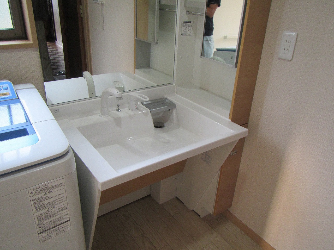 以前のお風呂は0.75坪で壁や床はタイルでした。冬場では脱衣室に毎日ストーブを持ってきて寒さをしのいでいたそうです。 今回のリフォームでは浴室と脱衣室を増築で広げお風呂は1坪サイズにして、浴室と脱衣室の両方に暖房機を、窓には断熱サッシを取付け、手摺や腰掛付き保温フタなど、より安心して快適に入浴していただける「サポートパック」を付けさせていただきました。 また洗面台は将来的な事を見越して、車いす対応の洗面台にしました。 ご高齢の方でも安心して使用していただけるリフォームになりました。