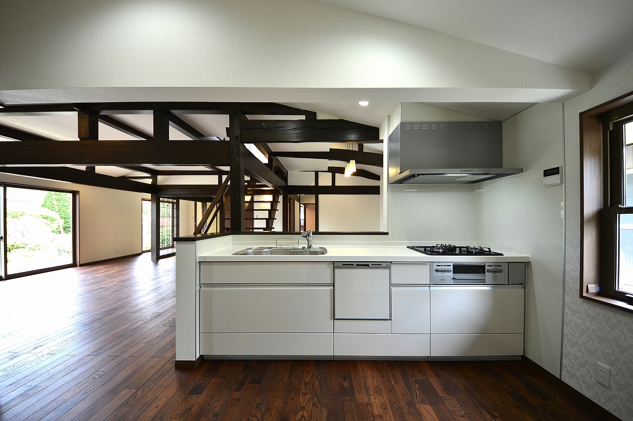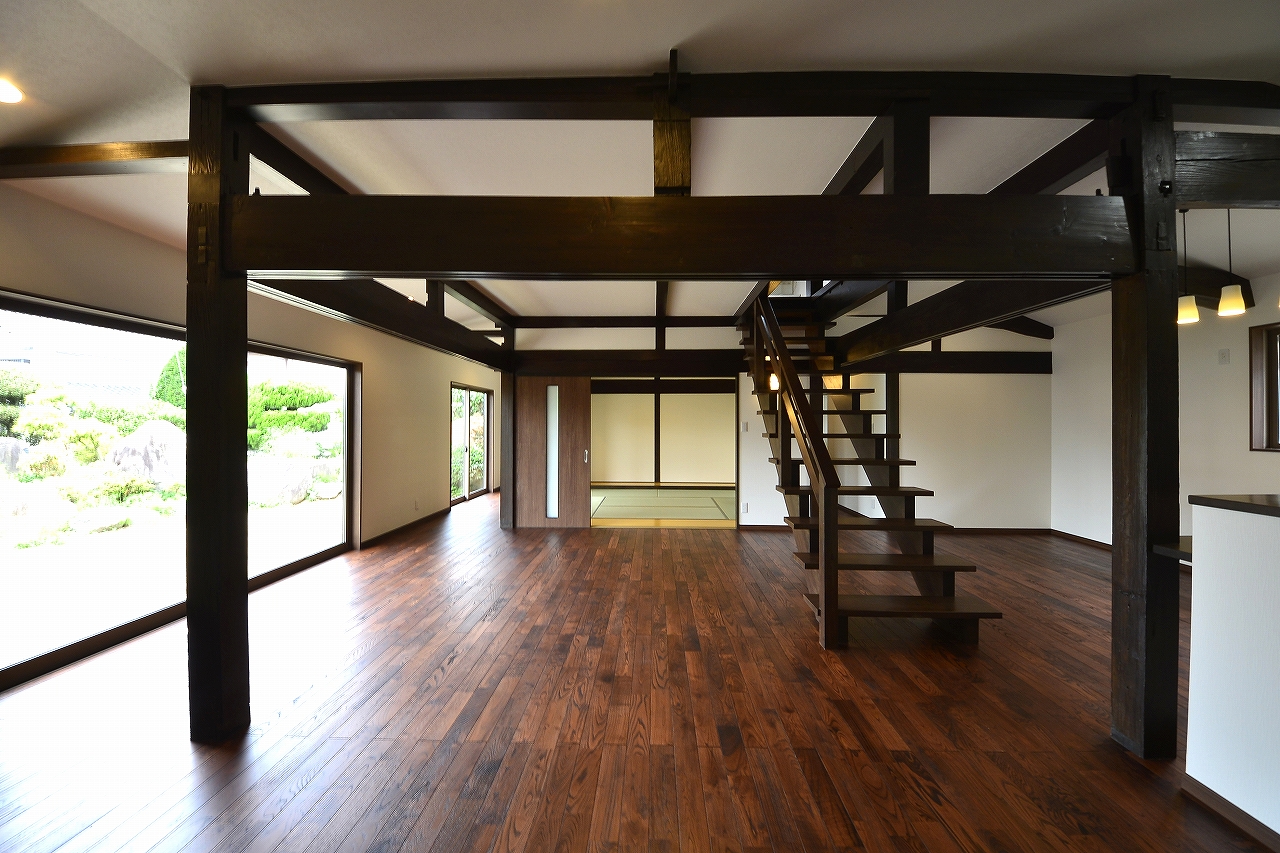 家族の記憶や思い出がぎっしり詰まっている家の歴史を現代の技術で全面リフォーム。 いかに現代の耐震性能に近づけられるか、古材をいかしながら現在風の仕上げと納まりを考えての工事。そして、構造材の傾きなども修正しながらの工事はとてもやりがいがありました。 太い柱や梁など家の歴史が染み込む古材の存在を大切にしながら、現代の建材や金物をつかって耐震や断熱などの性能を向上しました。