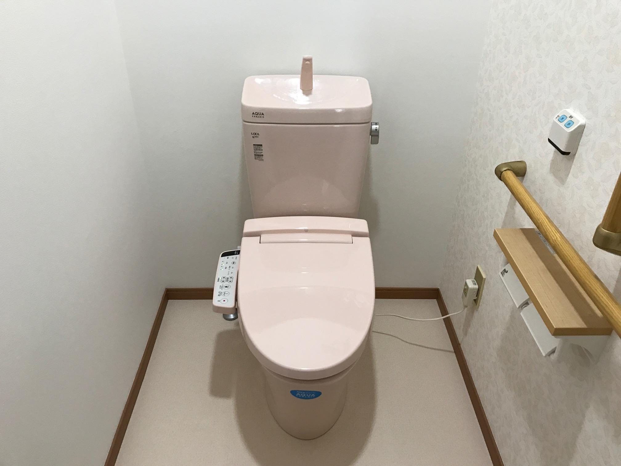 今回のリフォームは『介護保険』を使用し、バリアフリー工事を行いました。 トイレはLIXILのシャワートイレKBシリーズをご採用いただきました。 便器は「フチなし」なのでお掃除もしやすく、すっきりしたデザインです!! 内装は明るくするためにシンプルな白い壁紙と、一面だけアクセントとして 花柄の壁紙にしました。