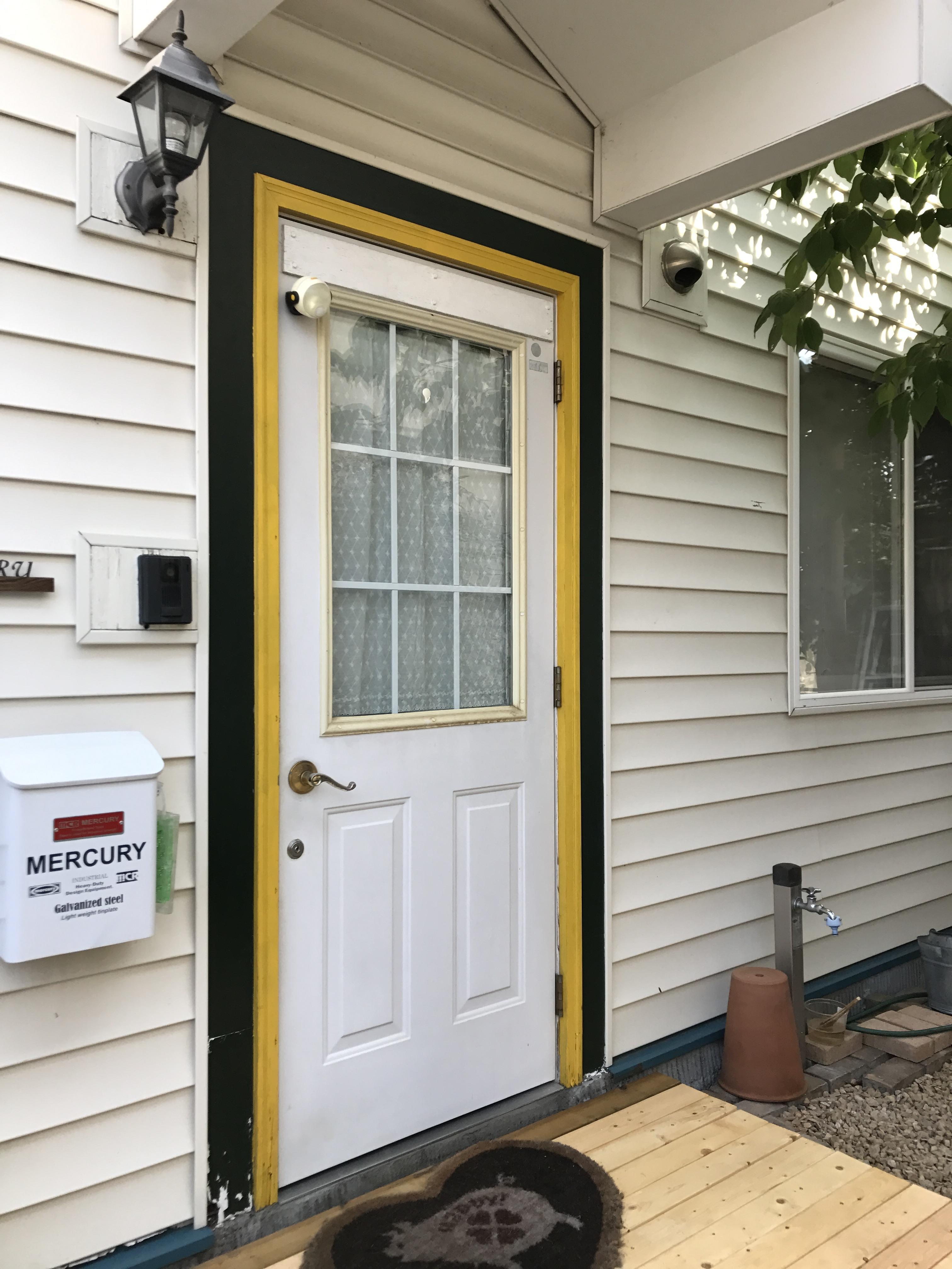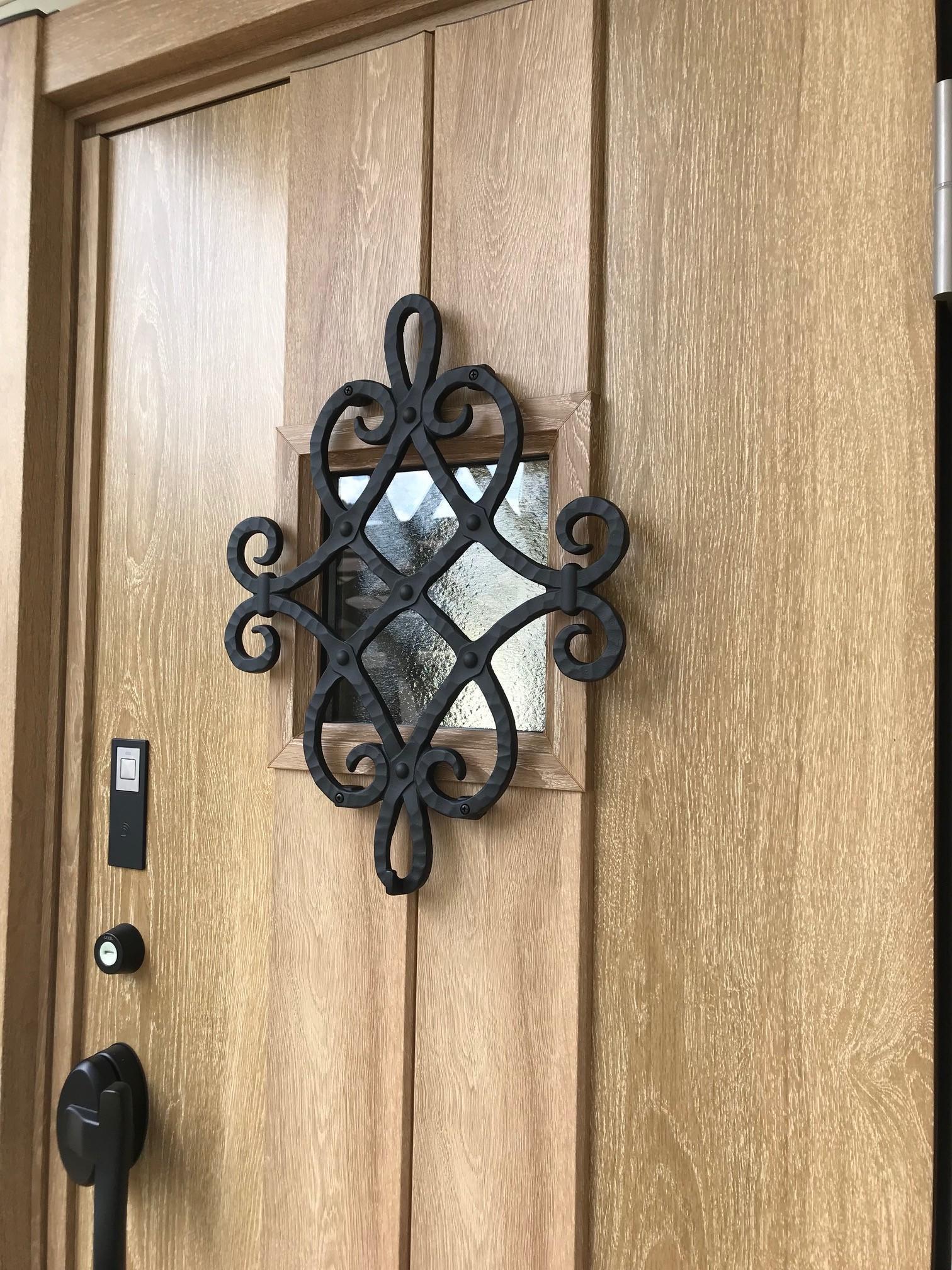 既存のドアは木製だったため、季節によって木の収縮があり隙間風が気になる状態、 それに加えて鍵も壊れてしまったのがきっかけで今回リフォームをさせていただきました。 ブラックのアイアンに目が引く、ナチュラルでかわいい玄関ドアに生まれ変わり、 鍵や隙間風などの不満もばっちり解消されます。 また、こちらの玄関ドアはカードキーなのでカードをピッとかざすだけで鍵が解除されます!! 最先端感がありますね、使ってみると便利なのでおすすめです♪♪