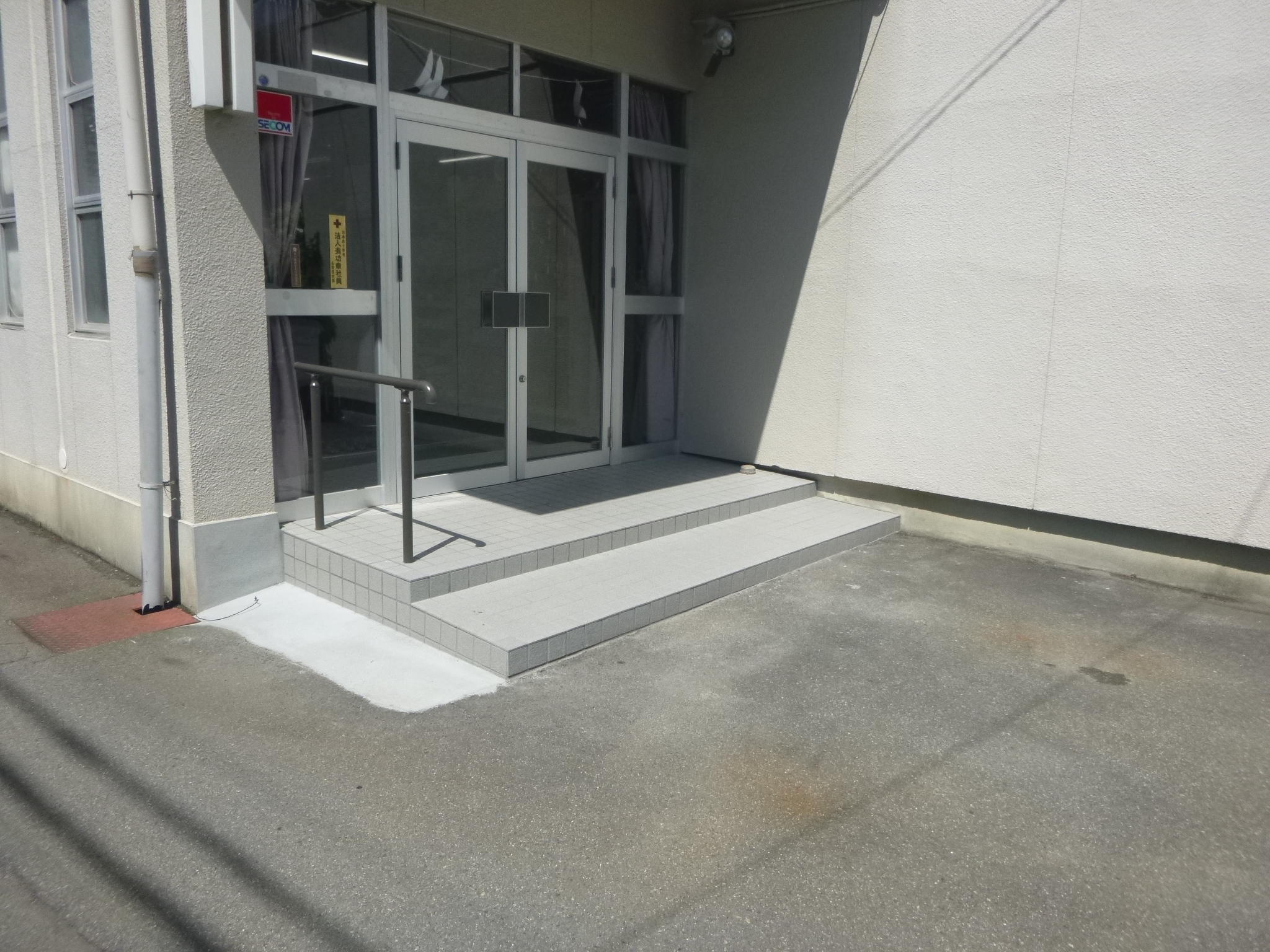 タイルの割れ剥がれも多く、扉の下のクツヅリとタイルの段差がある為、来社したお客様がつまづいてしまうという事もあり今回工事をしました。施工後は、もちろん段差もなくなりタイルも扉も新しくなったので喜んでもらうことができ良かったです。