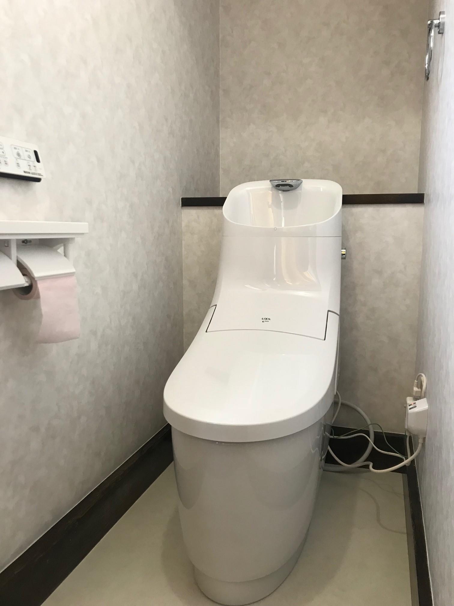 奥様のご要望により、便器だけでなく紙巻器や手すり、内装を清潔感のある『白』で統一し、明るくすっきりとした素敵なトイレ空間へと変わりました。 これからも快適に過ごしていくためのお手伝いができて、とっても嬉しいです♪♪
