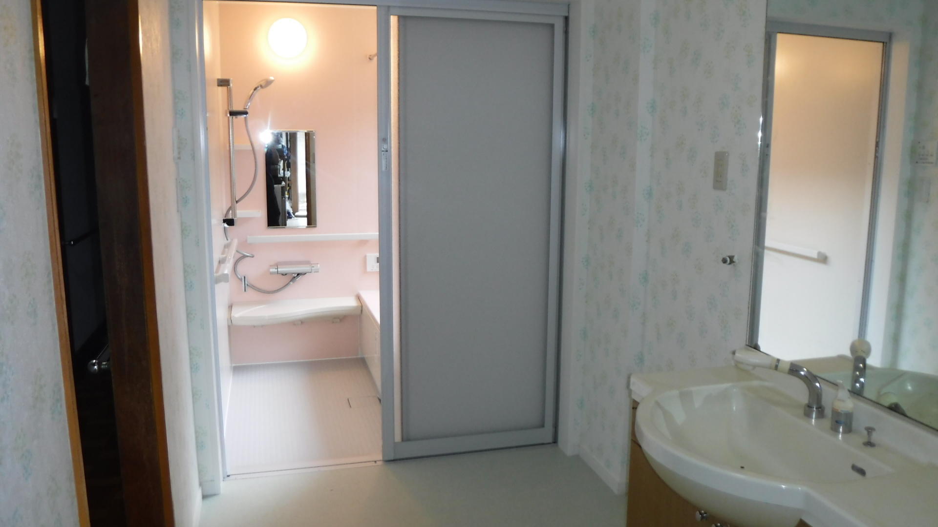 既存は石張りの浴室でした。 北側に配置されていることから 冬場は寒さが気になるということに加え バリアフリー性能の必要性を感じておられるお施主様の ご要望に応えられる内容を形にしました。