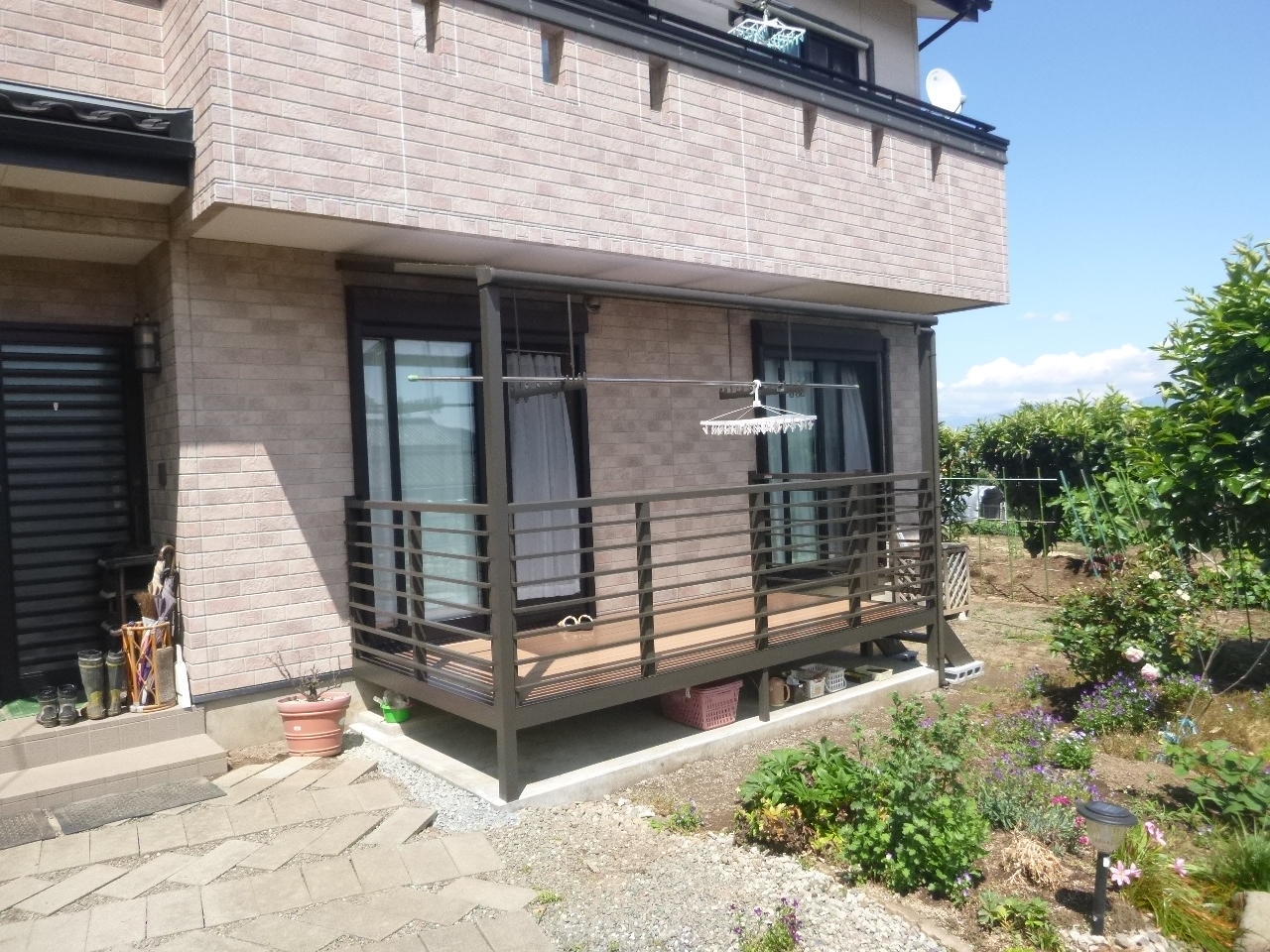 1階に屋根テラスを設置することで、毎日の洗濯物、布団干しが楽になりました。