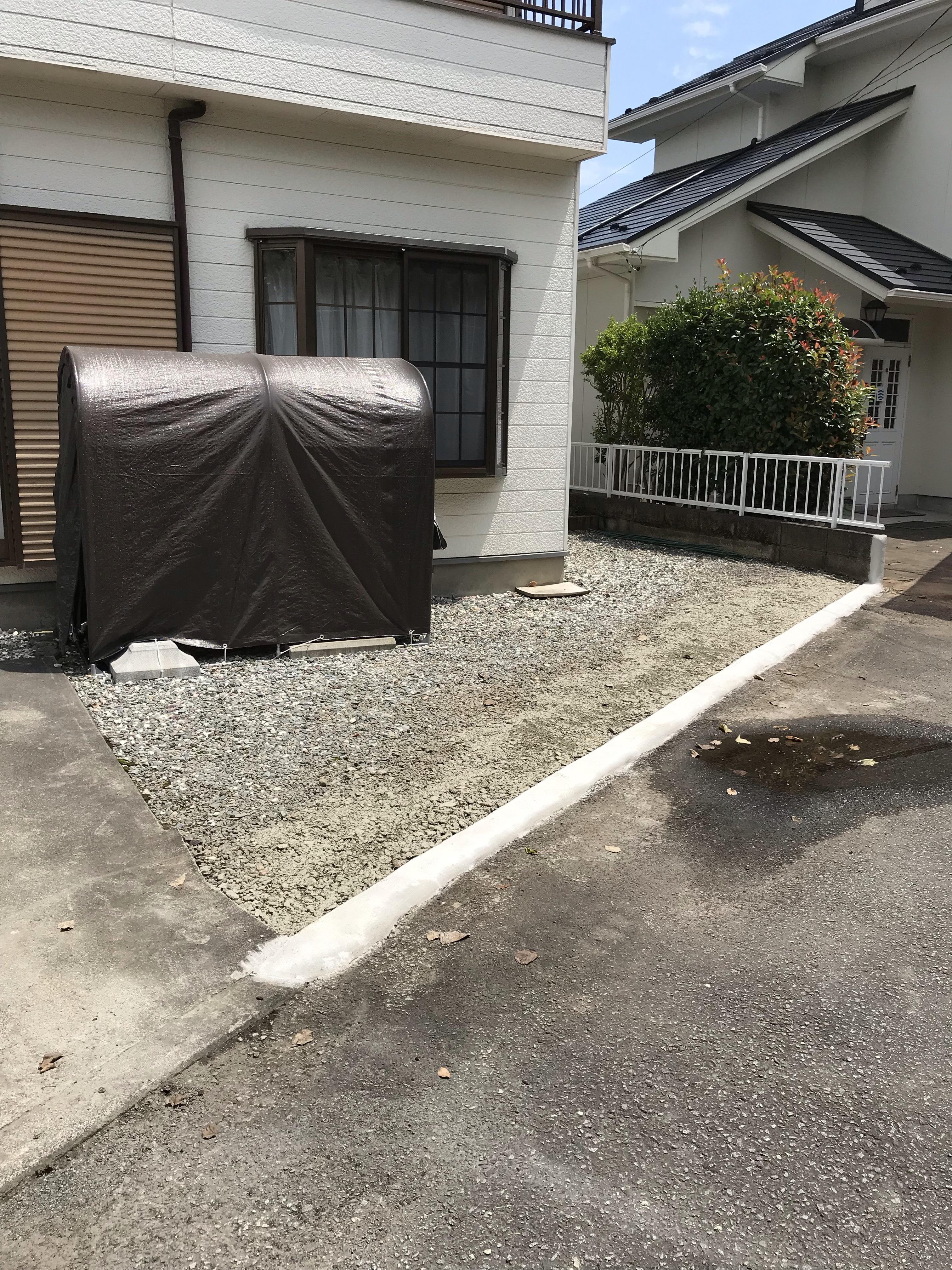 以前は車2台分の駐車スペースでした。3人の息子さん達の成長は早いもので、長男はそろそろ車の免許が取れる年齢です。これからのライフスタイルも変化していくのでしょうね。そこで今回、安心してもう1台の車が駐車できるよう、今後に備えてブロック塀とフェンスを撤去しました。