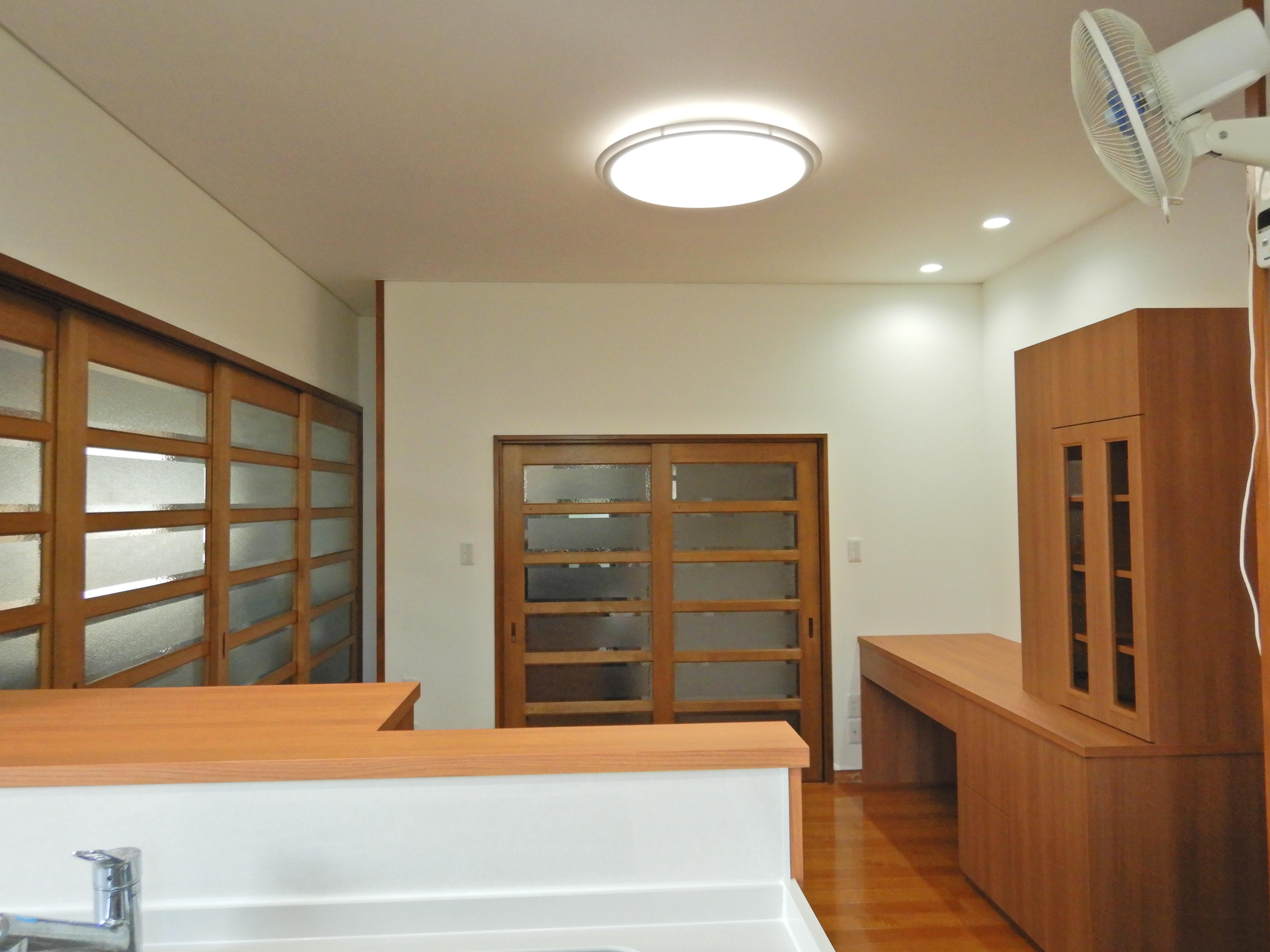 キッチンは壁付け型から対面型に変更し、2ヶ所の窓も交換しました。
