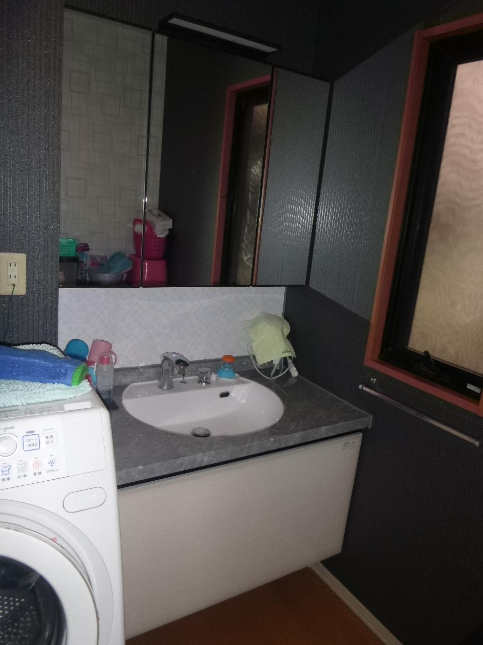 水廻り空間を同時にリフォームしました。1階のトイレはスリムになり、洗面台はかっこよくなり、同時にトイレ・洗面脱衣室は開放感のある青色系のクロスを貼り、落ち着いたリラックスできる空間に仕上がりました。