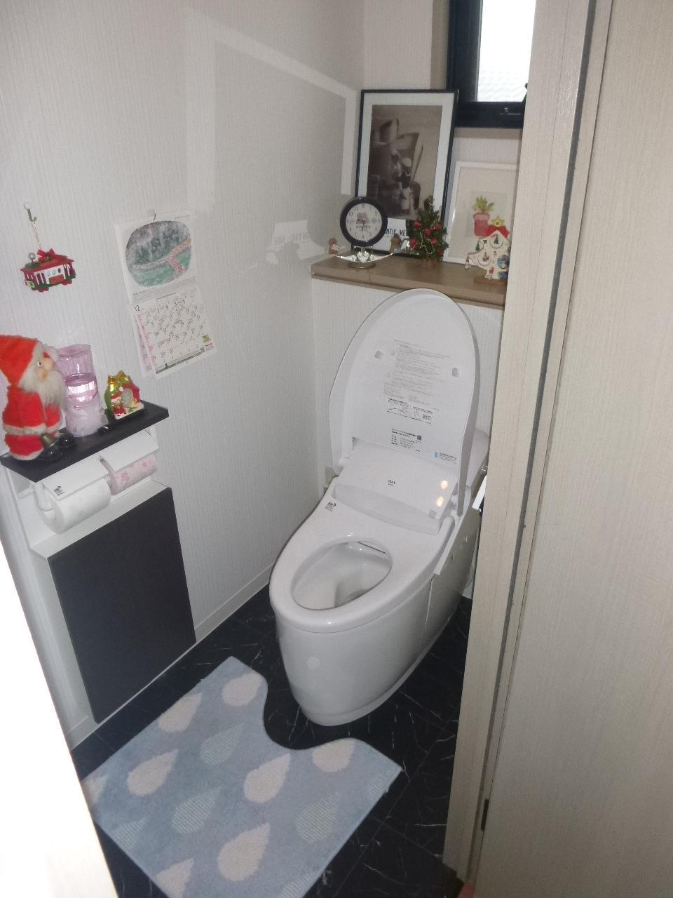 1階2階トイレ・洗面脱衣室を同時にリフォームしました。その際、クロスを青系に変えてリラックスできる空間になりました。