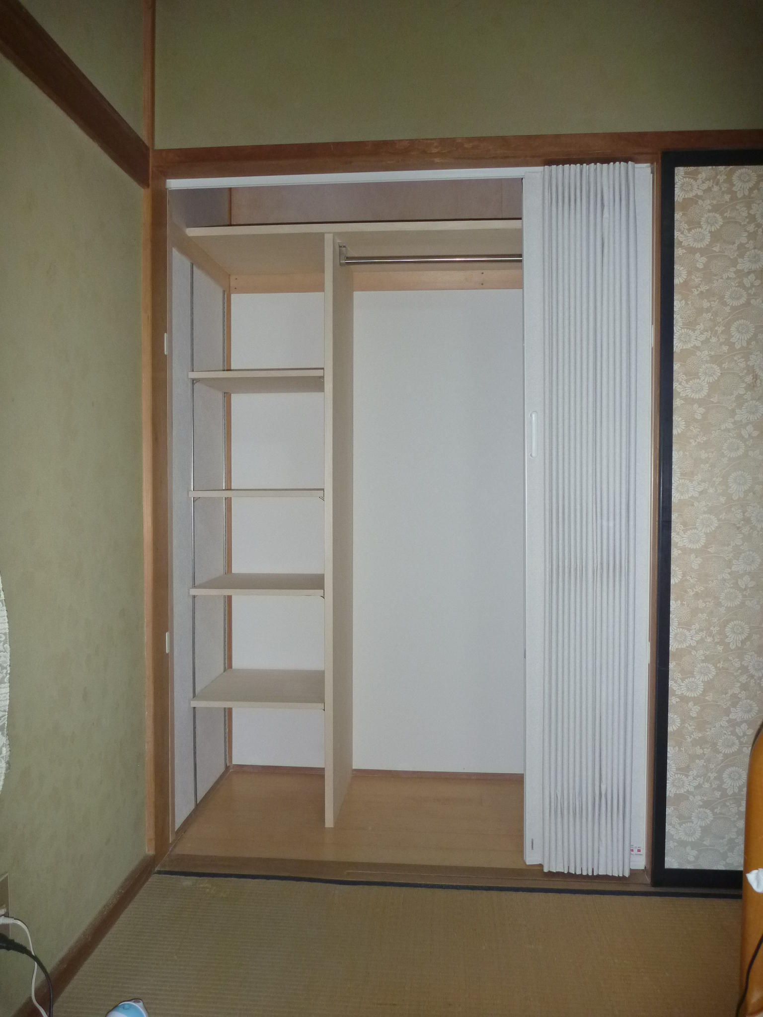 既存のトイレが古くなってしまい、新しいものと交換したとのご依頼をいただきました。トイレを新しいものに交換し、同時にトイレ内のクロスの張替えも行いました。奥様の好きな花柄のクロスに貼り替え、爽やかな印象のトイレ空間になりました。居室にある収納空間も、使い勝手が悪いことから、収納内に作り付けの棚を設け、間仕切りを取り付け使いやすいようリフォームしました。