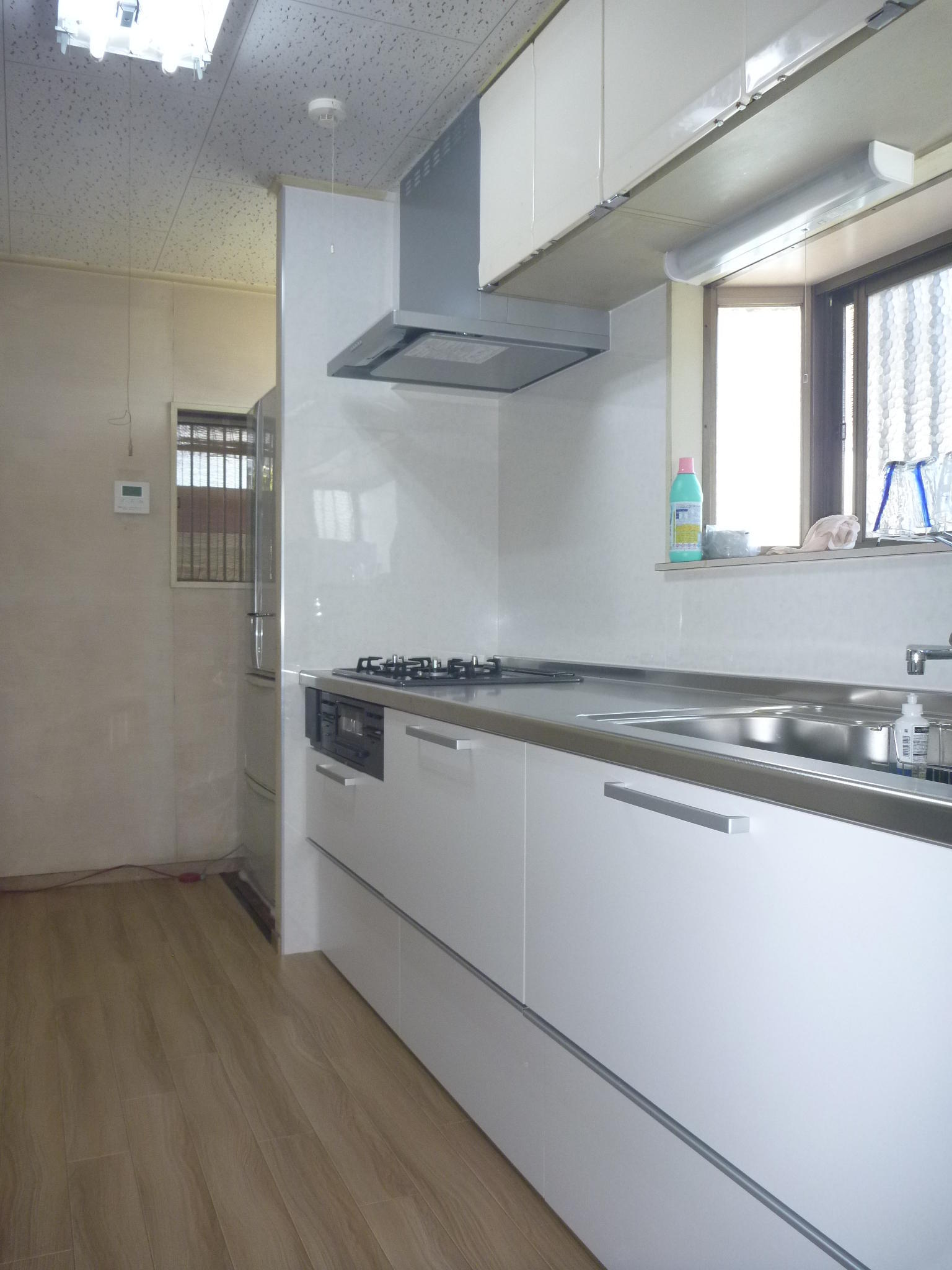 ご自宅を建てたときからずっと使用していたキッチンが古くなってしまったので、新しいシステムキッチンにしたいとご依頼いただきました。ビルトインのガスコンロになり、レンジフードもお手入れが楽で、収納スペースもたくさん確保できるようになりました。