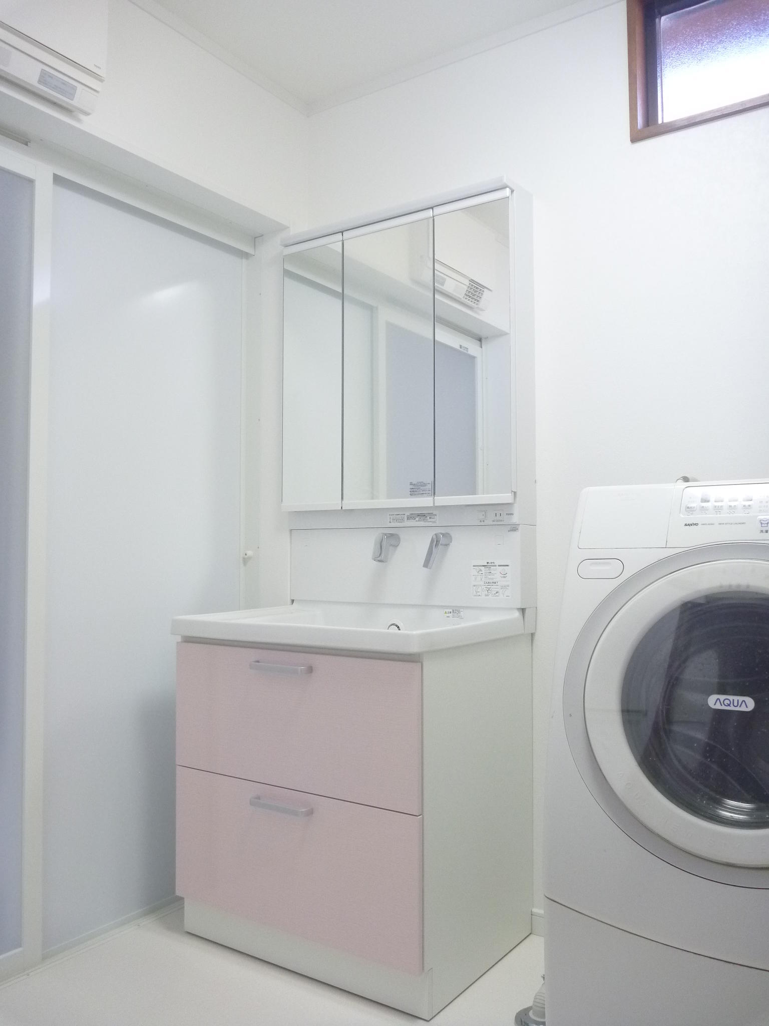 お風呂はユニットバスになり、ゆったりと足が伸ばせる浴槽になりました、タイルの床は冷たくひやっとすることが多々あったと思いますが、今回のリフォームで解消しました。 洗面化粧台も新しくしました!!!お手入れも簡単になり、毎日気持ちよく過ごせるようになります。