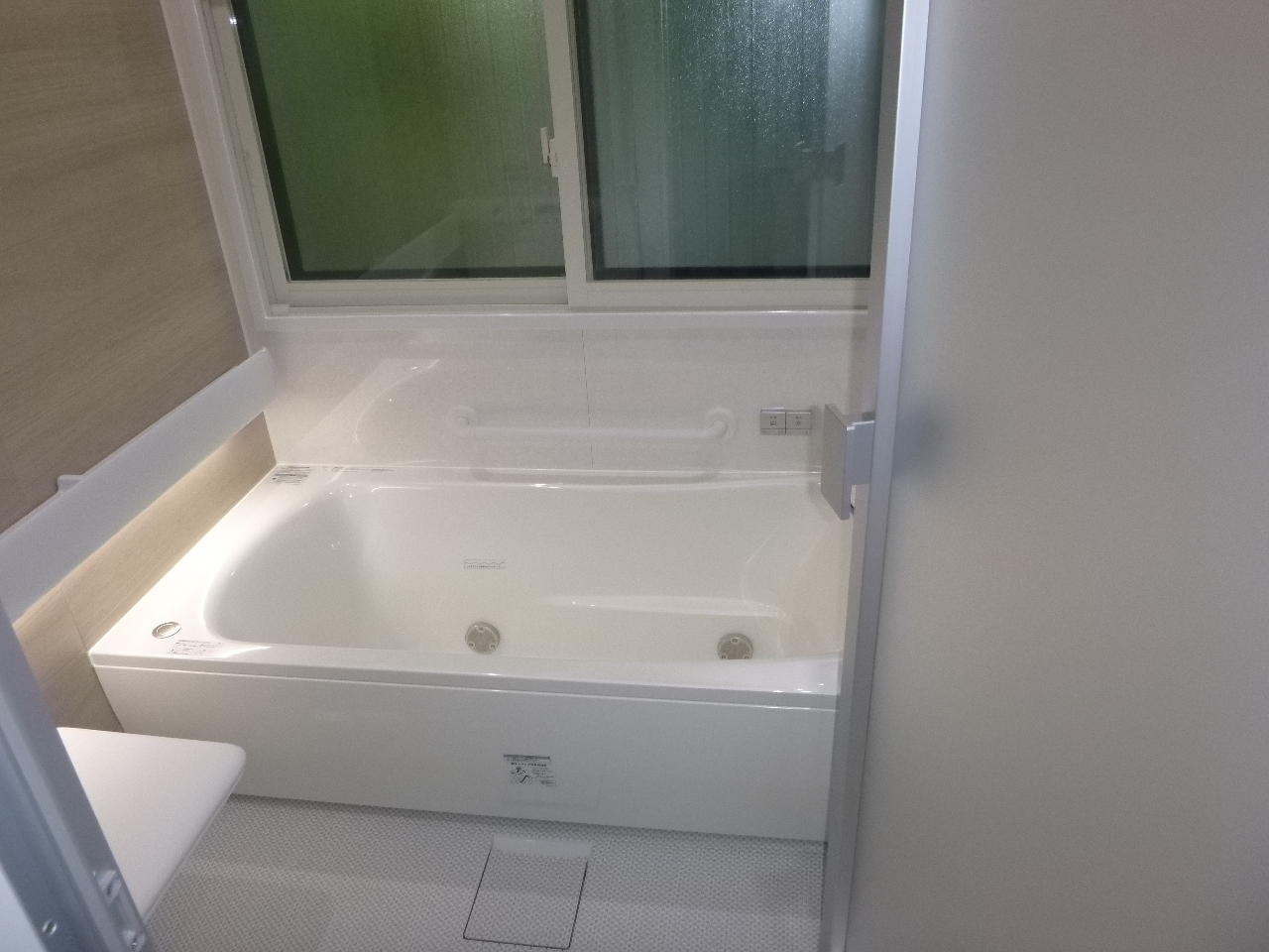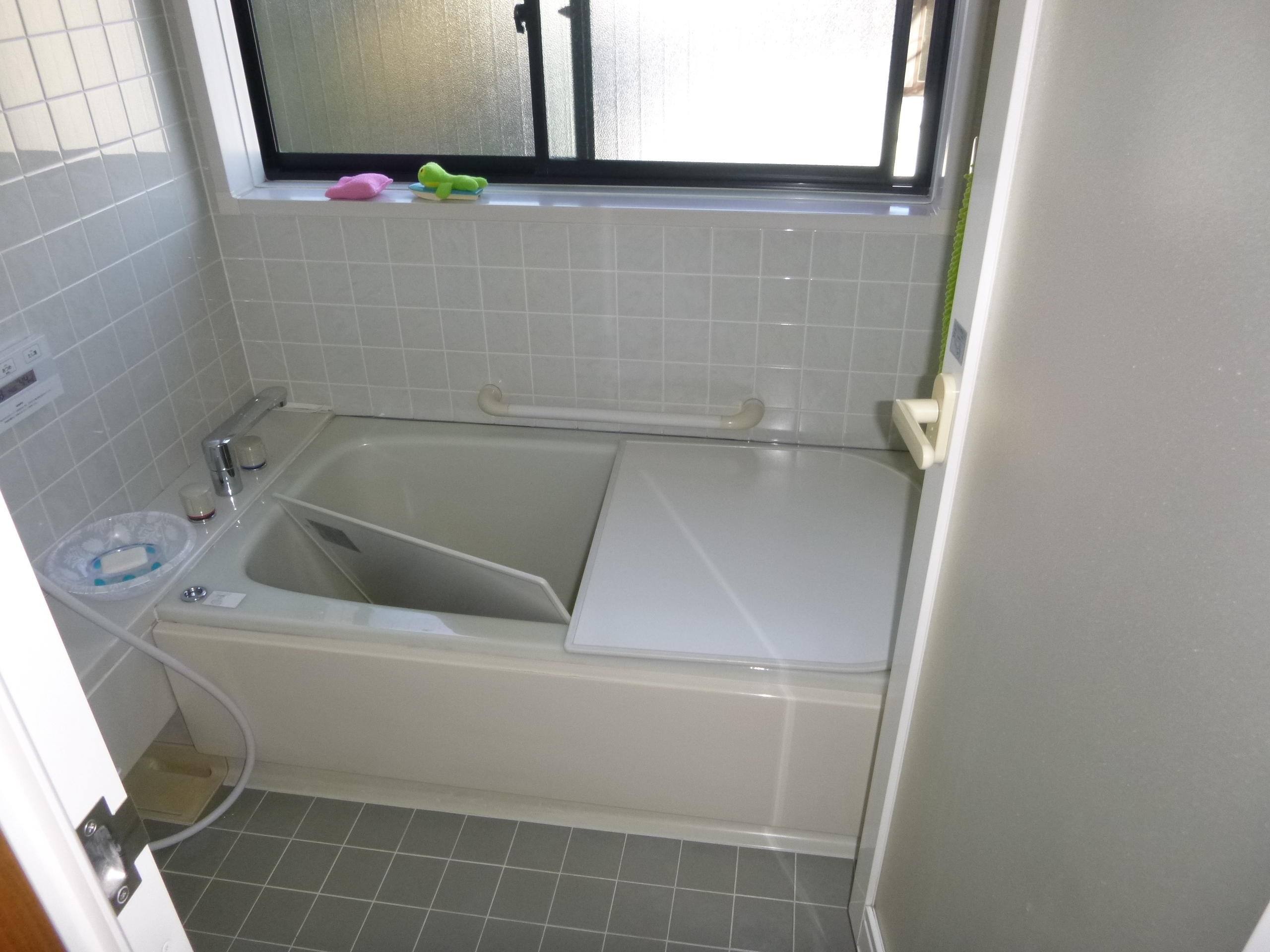 南アルプス市浴室リフォーム。タイル張りだったお風呂から、木目の綺麗な壁のお風呂にリフォームしました。
