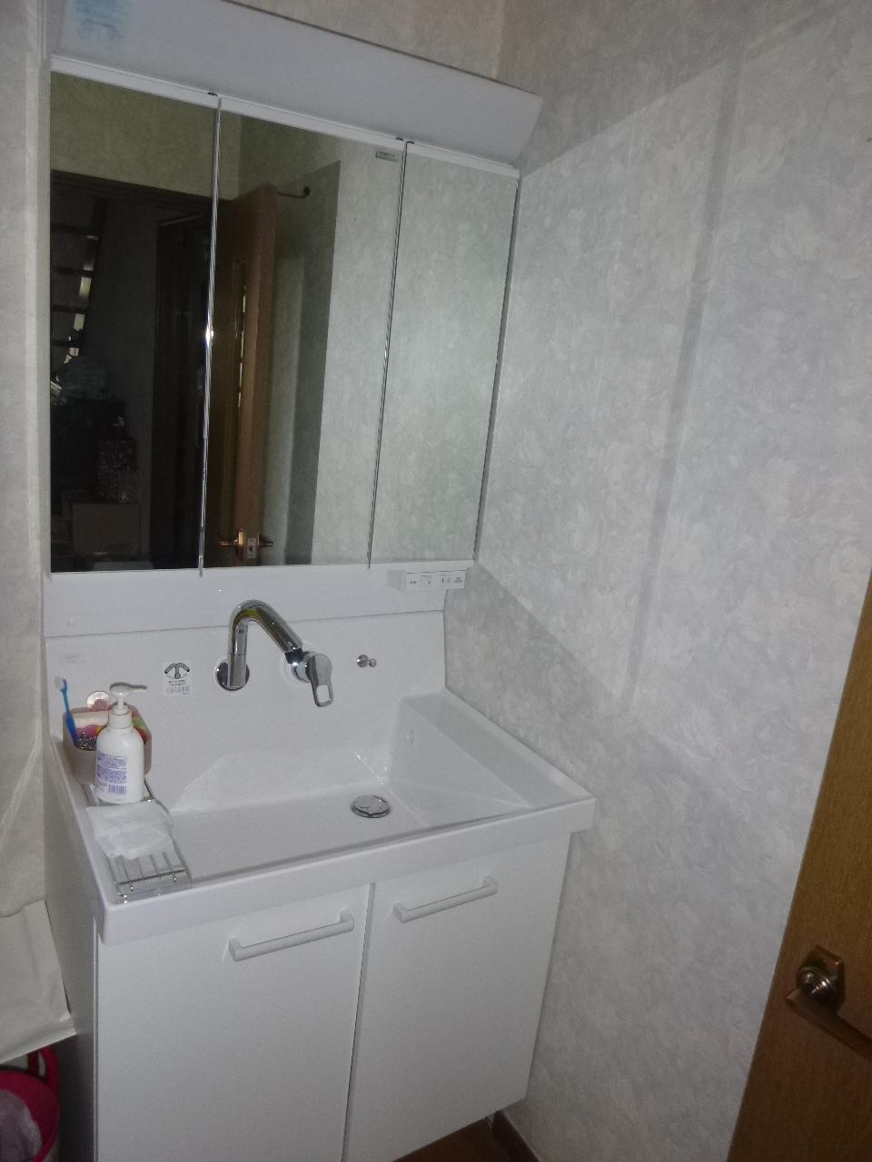 節水型のトイレ、LIXILアメージュZAを設置しました。アメージュZAは、フチレス形状になっているのでお掃除もラクラクになりました。あまりスペースの取れないトイレでも壁リモコンにするとスッキリ見え、広くなった感じがします。 洗面化粧台は、LIXILピアラを設置しました。収納上手なピアラなので、すっきりときれいな洗面空間になりました。
